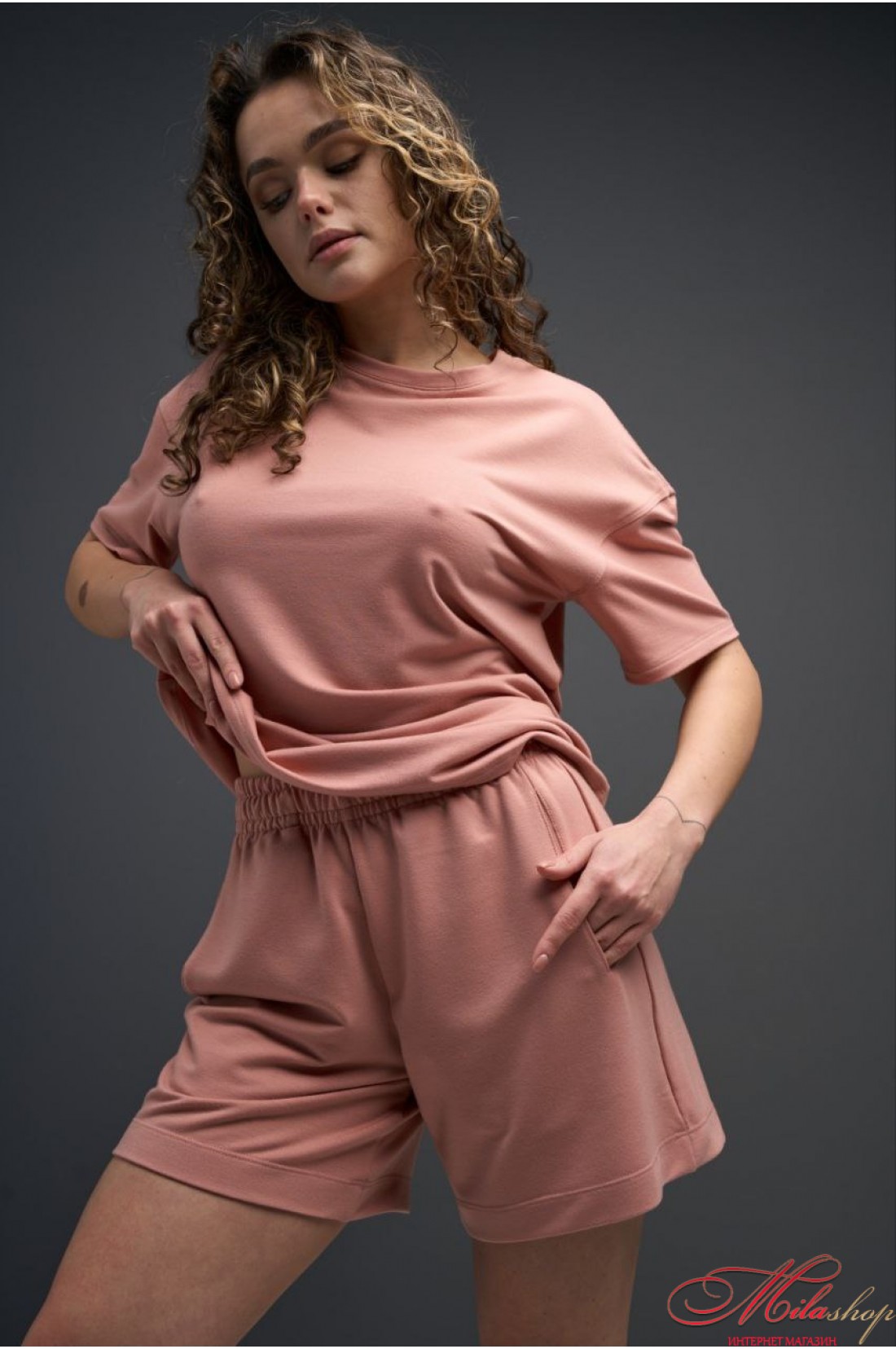 Набір для домашнього відпочинку. Віскозне полотно пропускає повітря, вбирає вологу, не викликає подразнень. Футболка з короткими рукавами. Неглибокий овальний виріз горловини, шорти утримуються на талії м'якою резинкою.