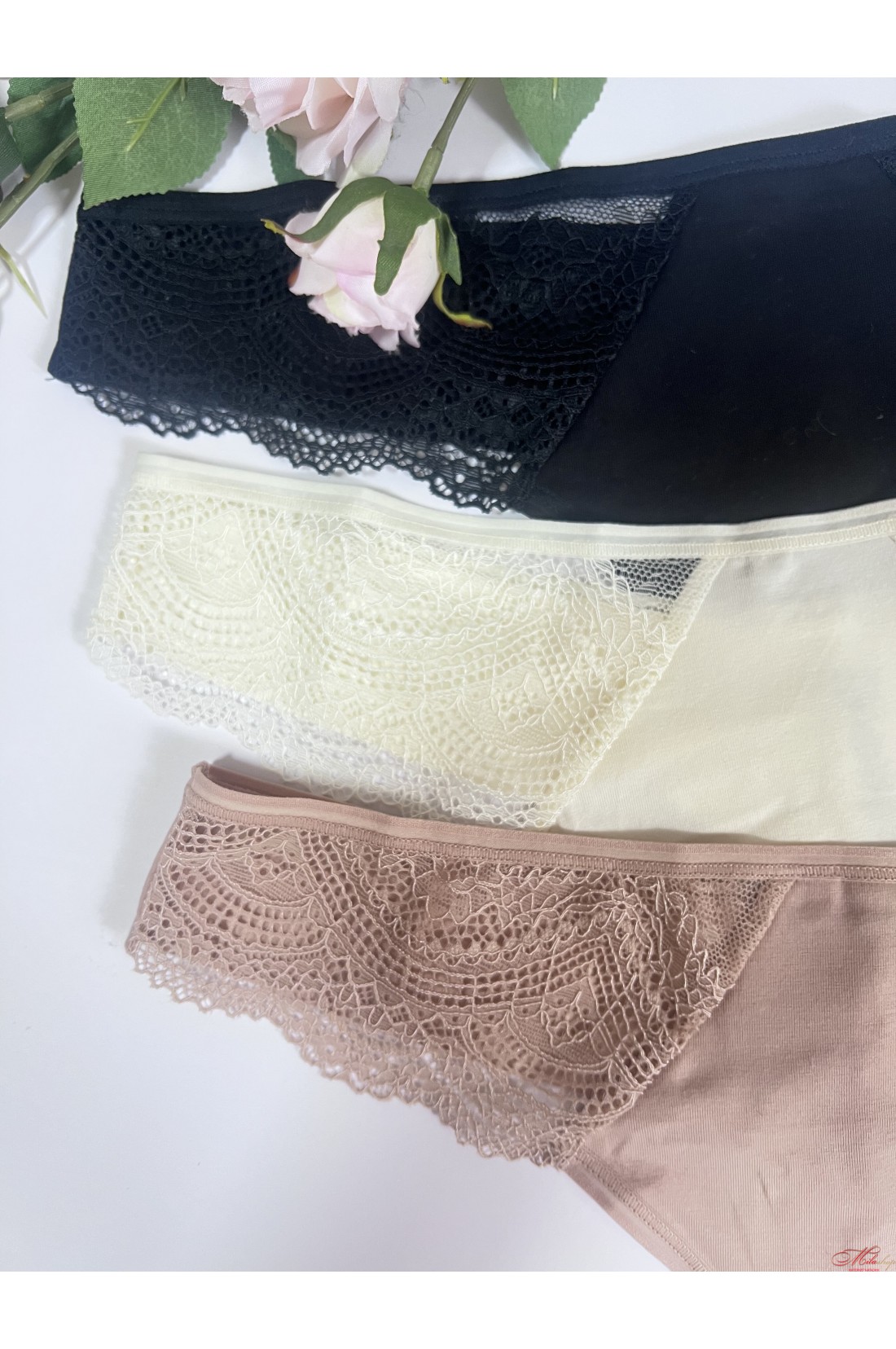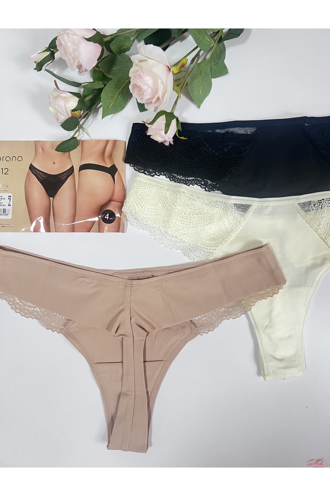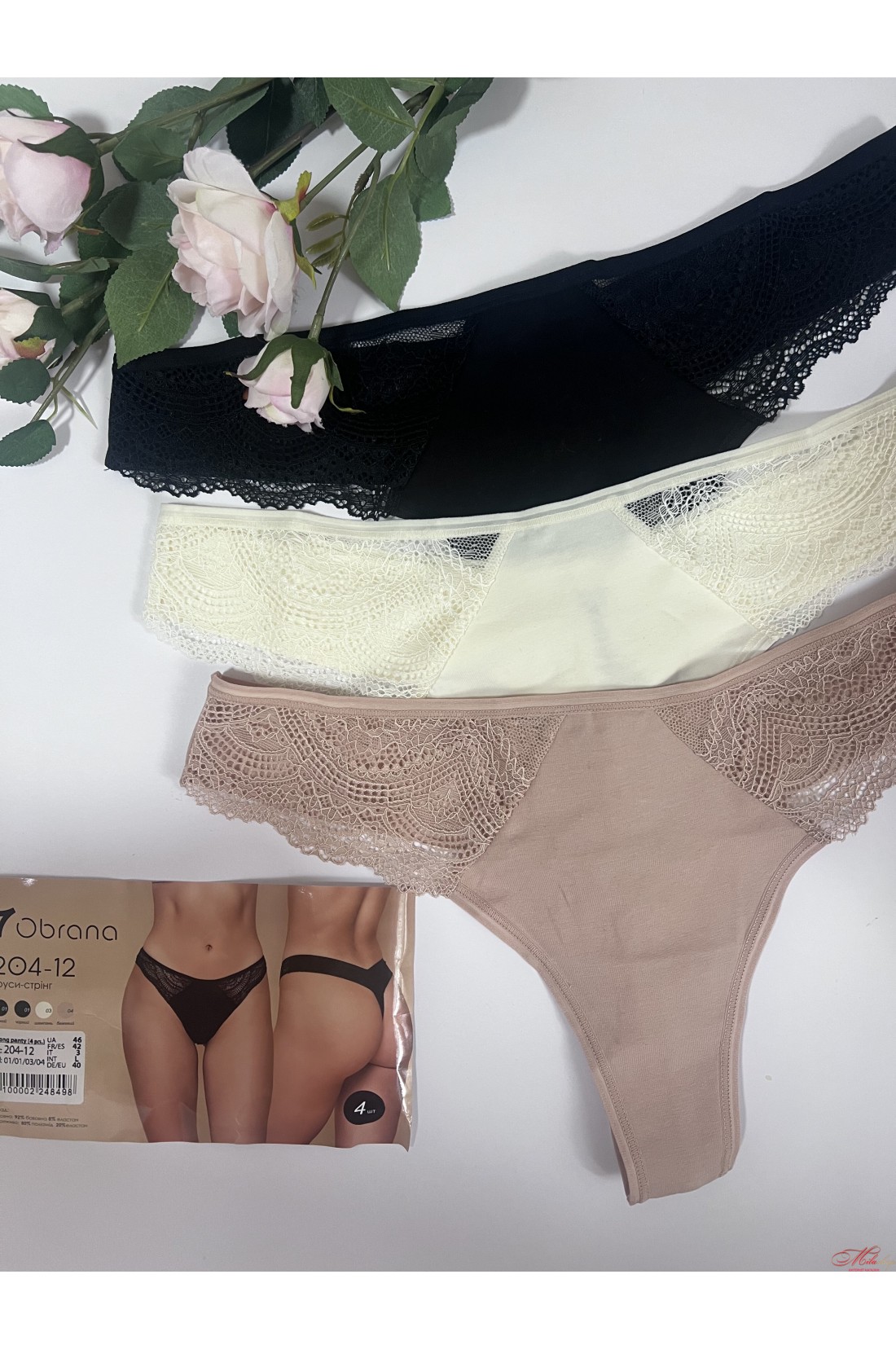 Чудові трусики стрінги Obrana виконані з бавовняного полотна з мереживом. Середня – завищена лінія талії. Дуже комфортні м'які плоскі шви.