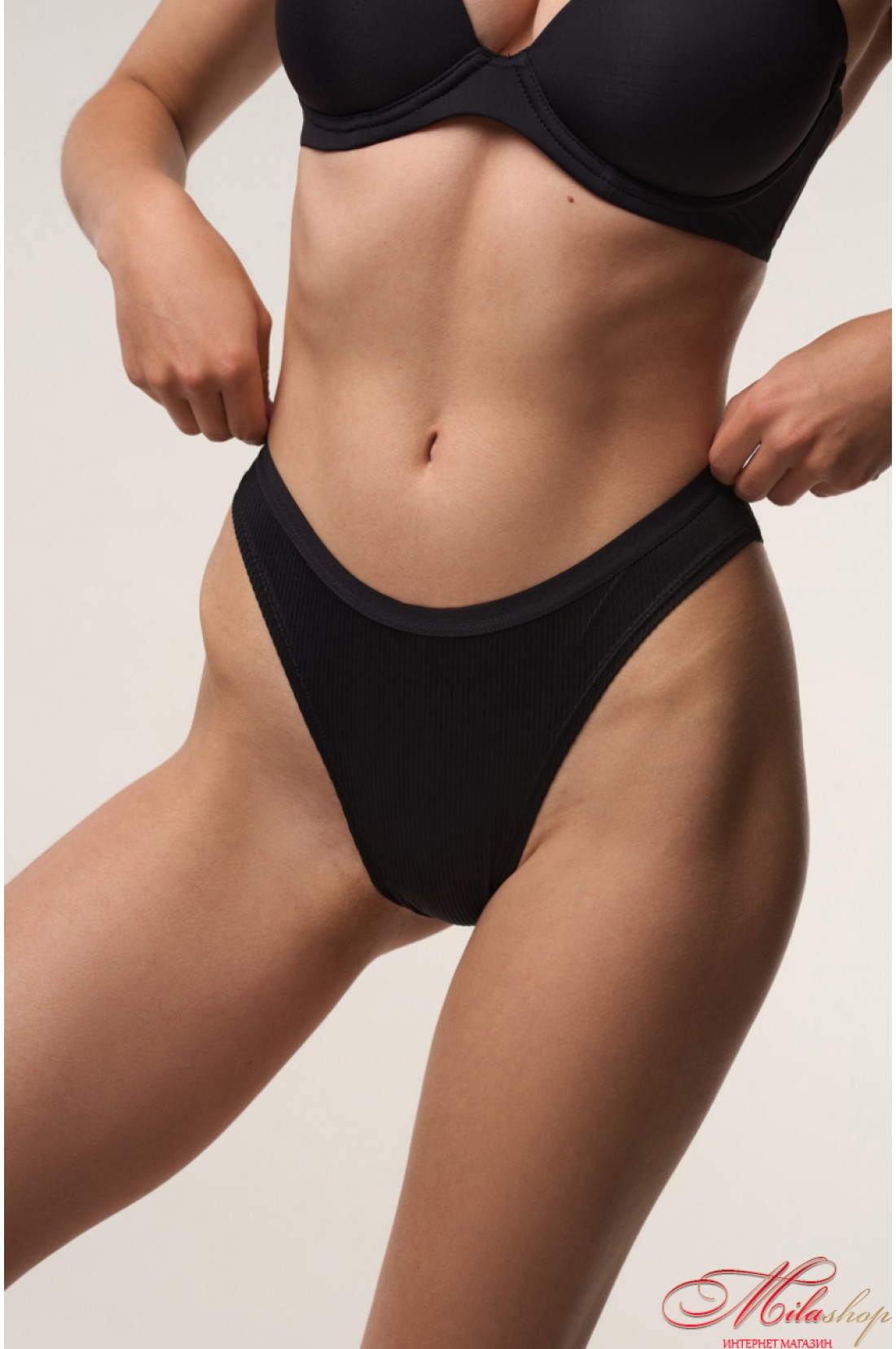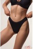 Трусики бразиліана, класичної форми з м’якої тканини в рубчик. Трусики повномірні, плотно та комфортно прилягають до тіла. Маюсь завищену та середню посадку залежно від зросту.