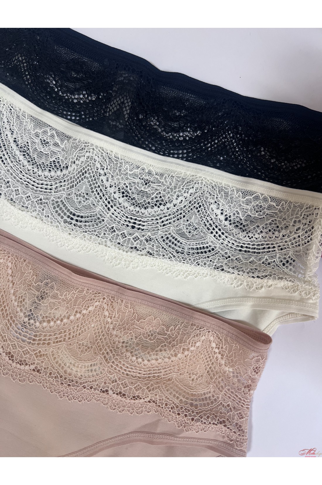 Комплект складається з 4 трусиків одного розміру: 2шт чорний, 1шт бежевий, 1шт шампань. Прекрасні трусики сліпи Obrana виконані з бавовняного полотна з мереживною вставкою біля пояса. Висока лінія талії. Дуже комфортні м'які плоскі шви.