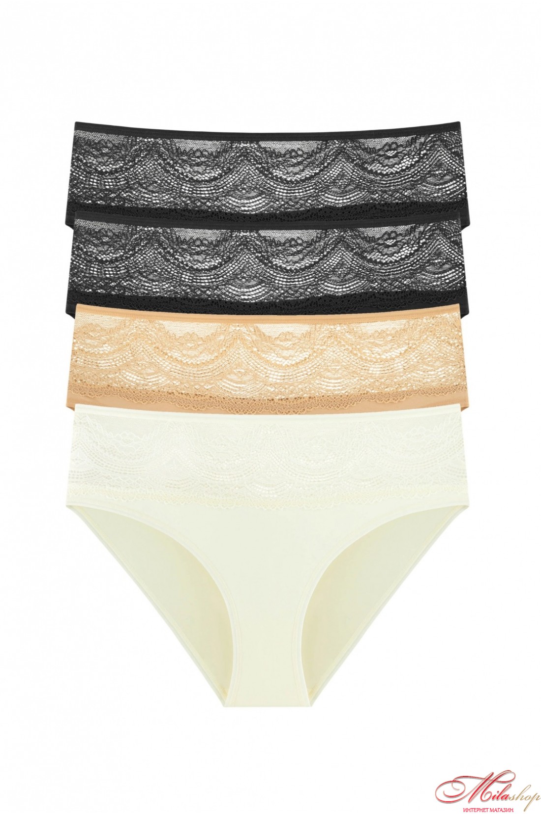 Комплект бавовняні високі трусики сліпи з мереживним поясом 4шт Obrana (Anabel Arto) 204-31