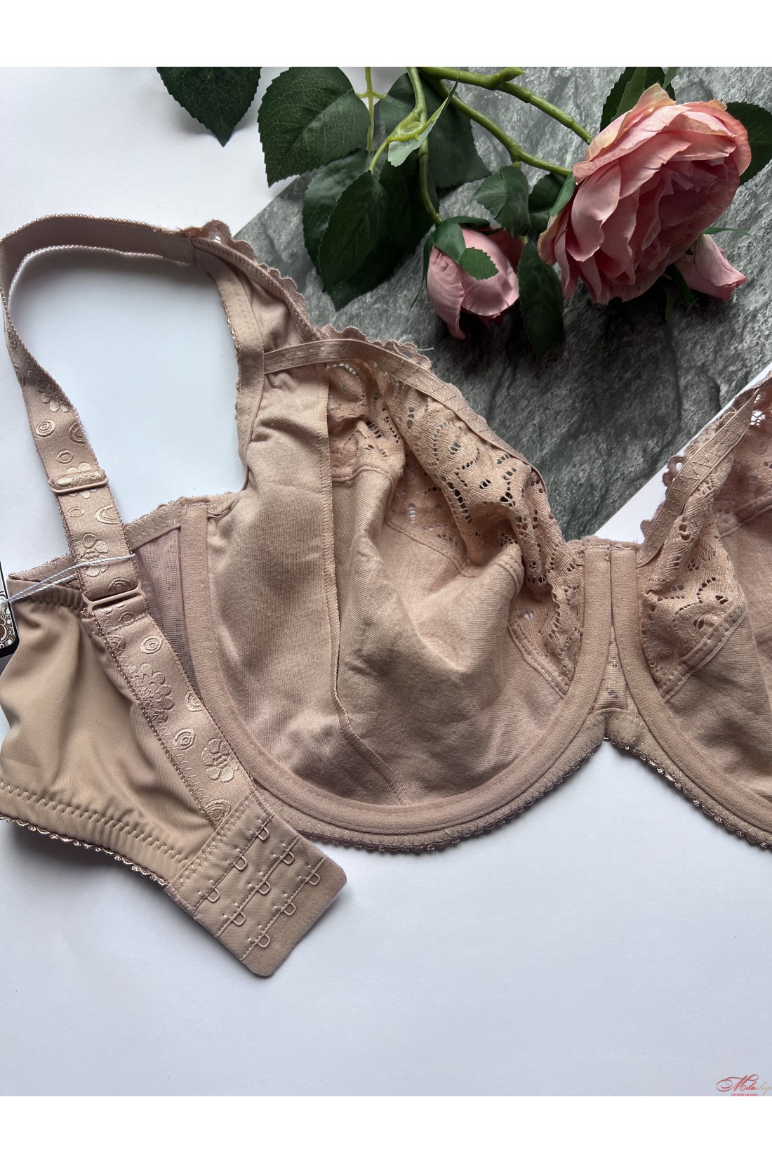 Бюстгальтер для великих грудей із посиленими бретелями Lanny mode на кісточках. Бічна деталь філіжанки плавно переходить у розширену бретель чудово формуючи та підтримуючи пишні форми. Чашка з щільного мереживного полотна всередині продубльована бавовною, спинка з еластичного мікрофібрового полотна. Чудова підтримка для чудових форм!