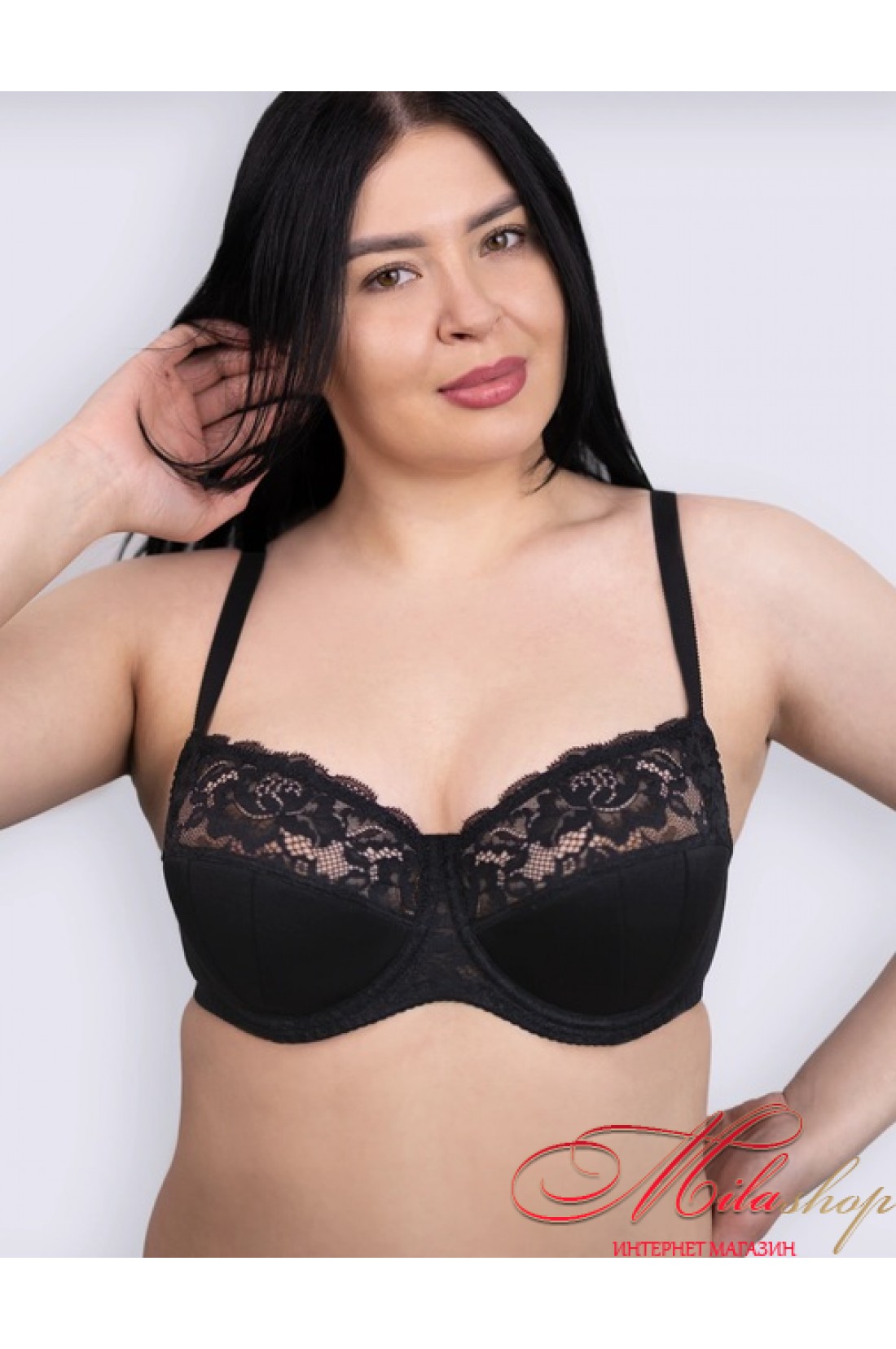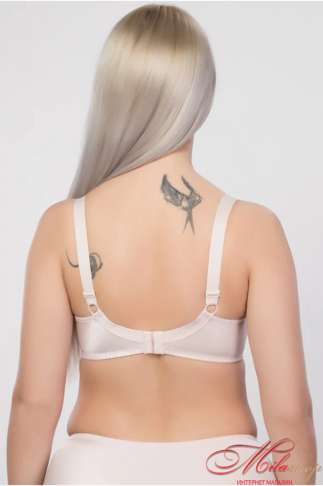 Бюстгальтер на каркасах з еластичного полотна і нееластичного мережива. Нижні деталі чашок дубльовані тонким поролоном і трикотажним бавовняним полотном. Гладка спинка. Бретелі не знімні, регулюються по довжині.