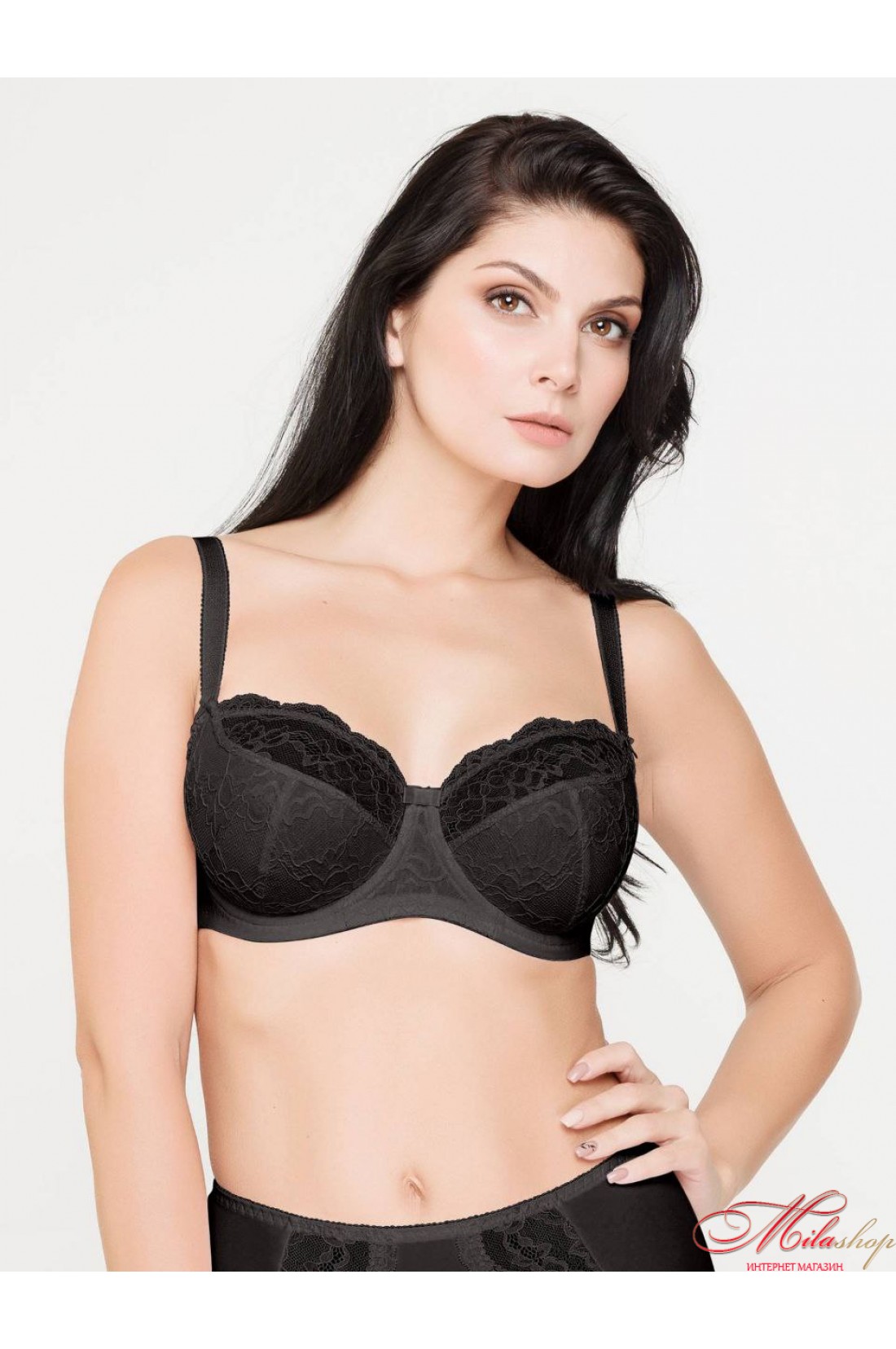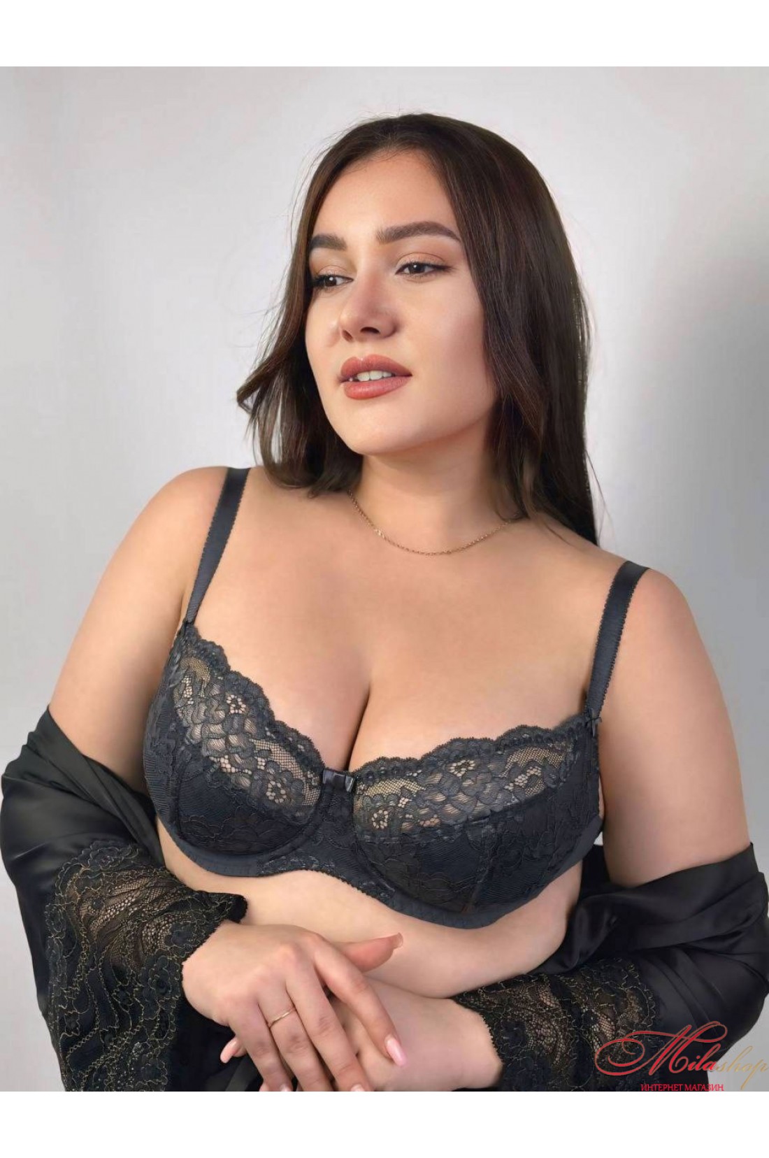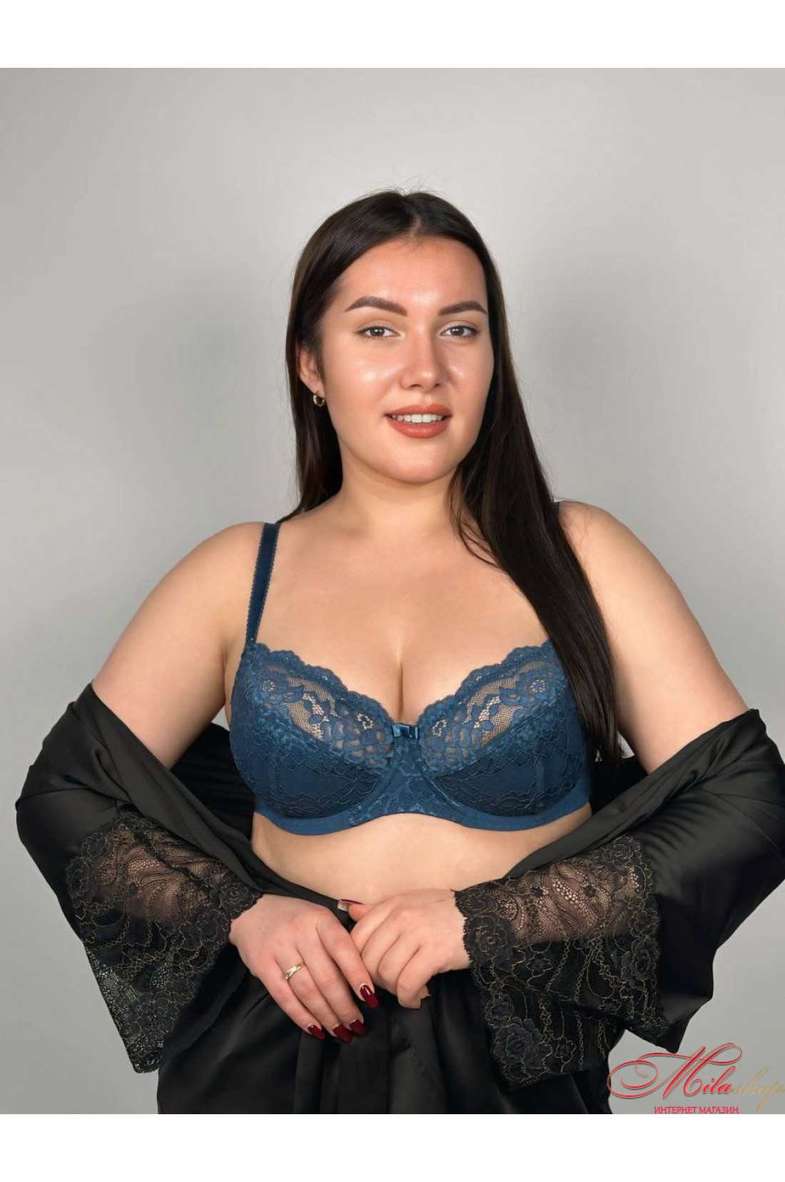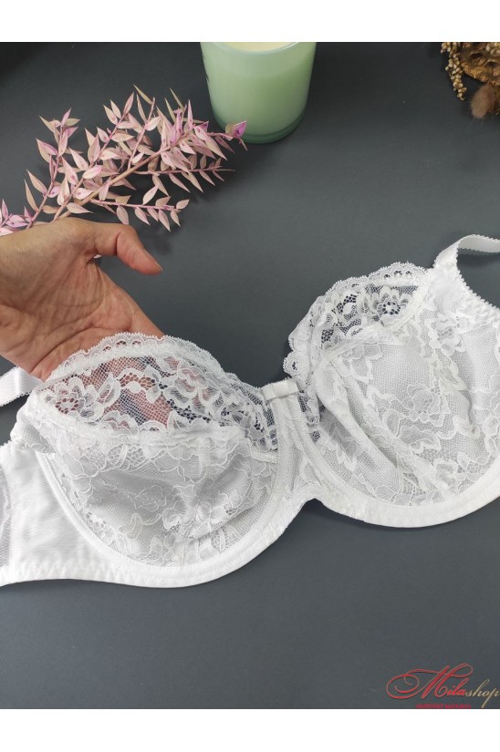 Бюстгальтер із м'якими чашками на кісточках. Широкий незнімний бретель, регулюється по довжині. Кубки бюстгальтера декоровані гарним мереживом.