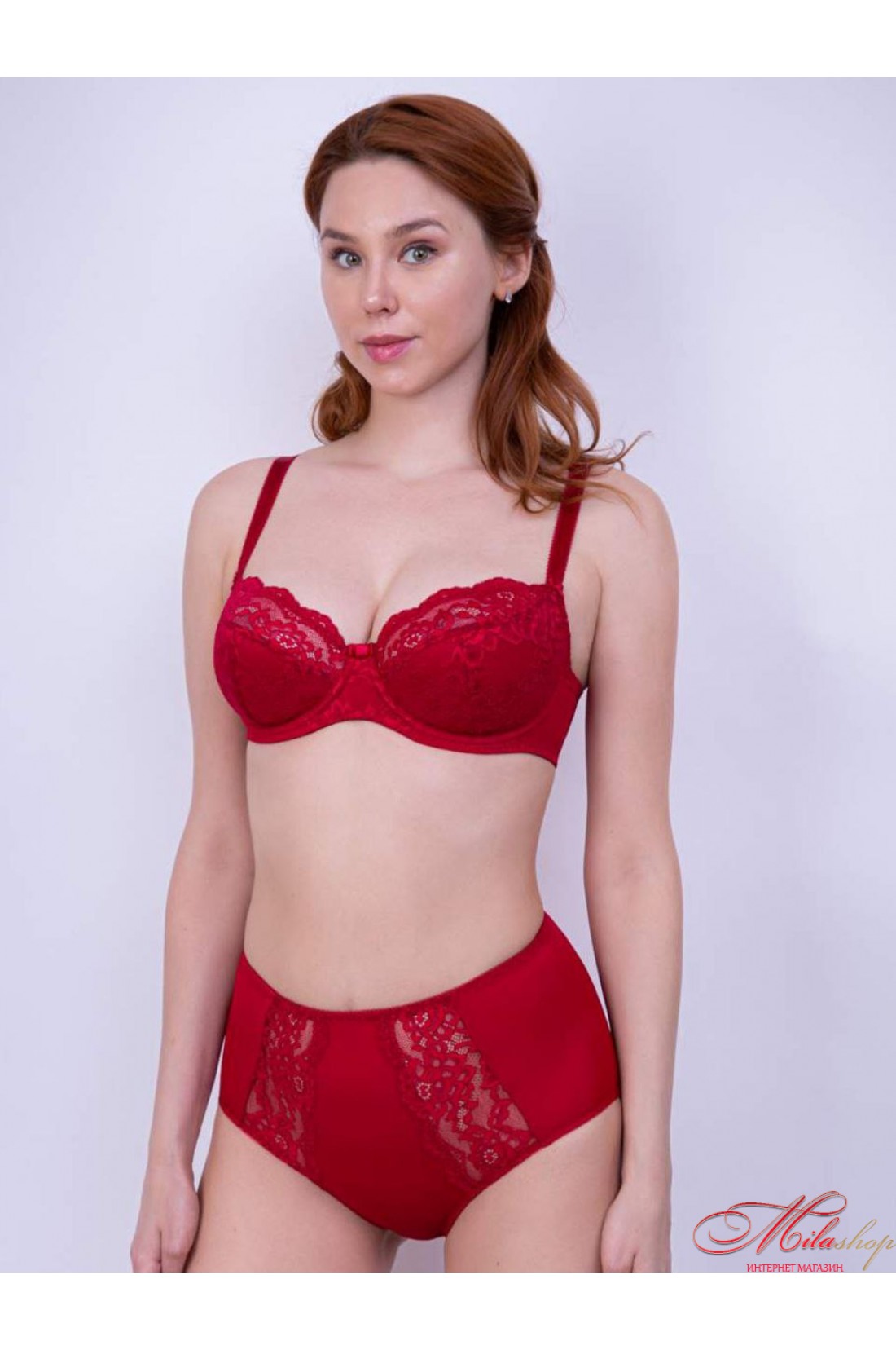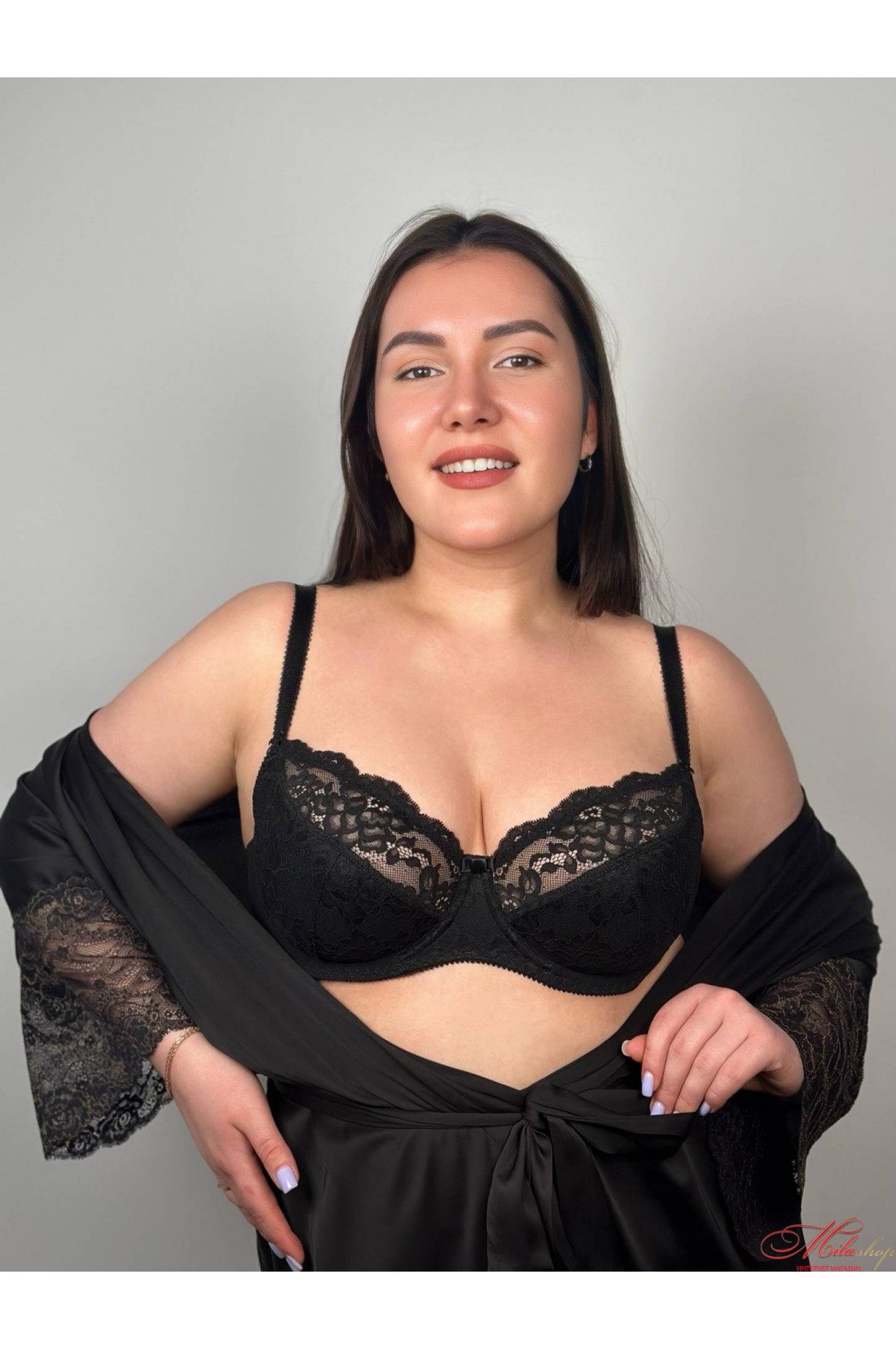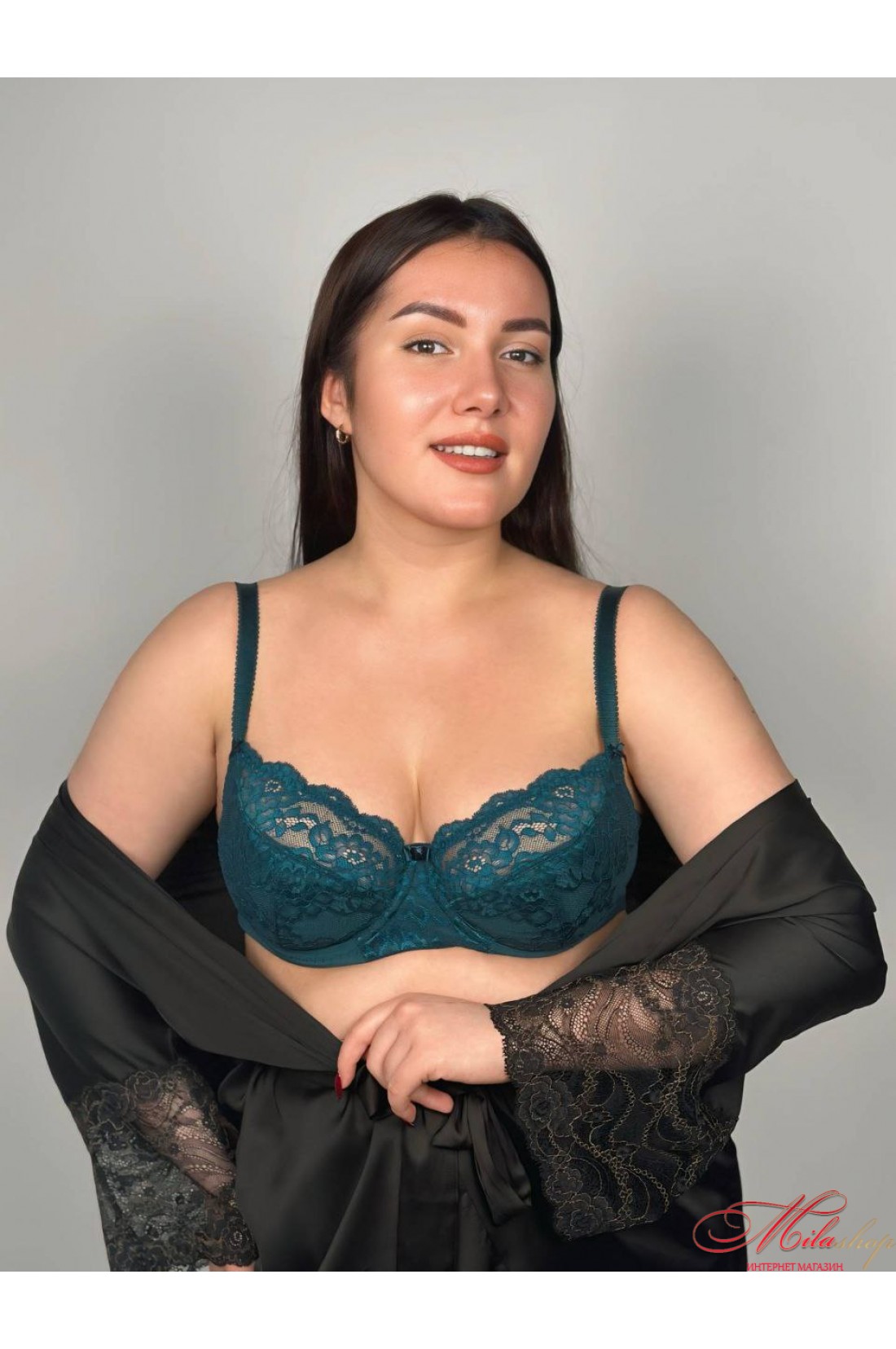 Бюстгальтер із м'якими чашками на кісточках. Широкий незнімний бретель, регулюється по довжині. Кубки бюстгальтера декоровані гарним мереживом.