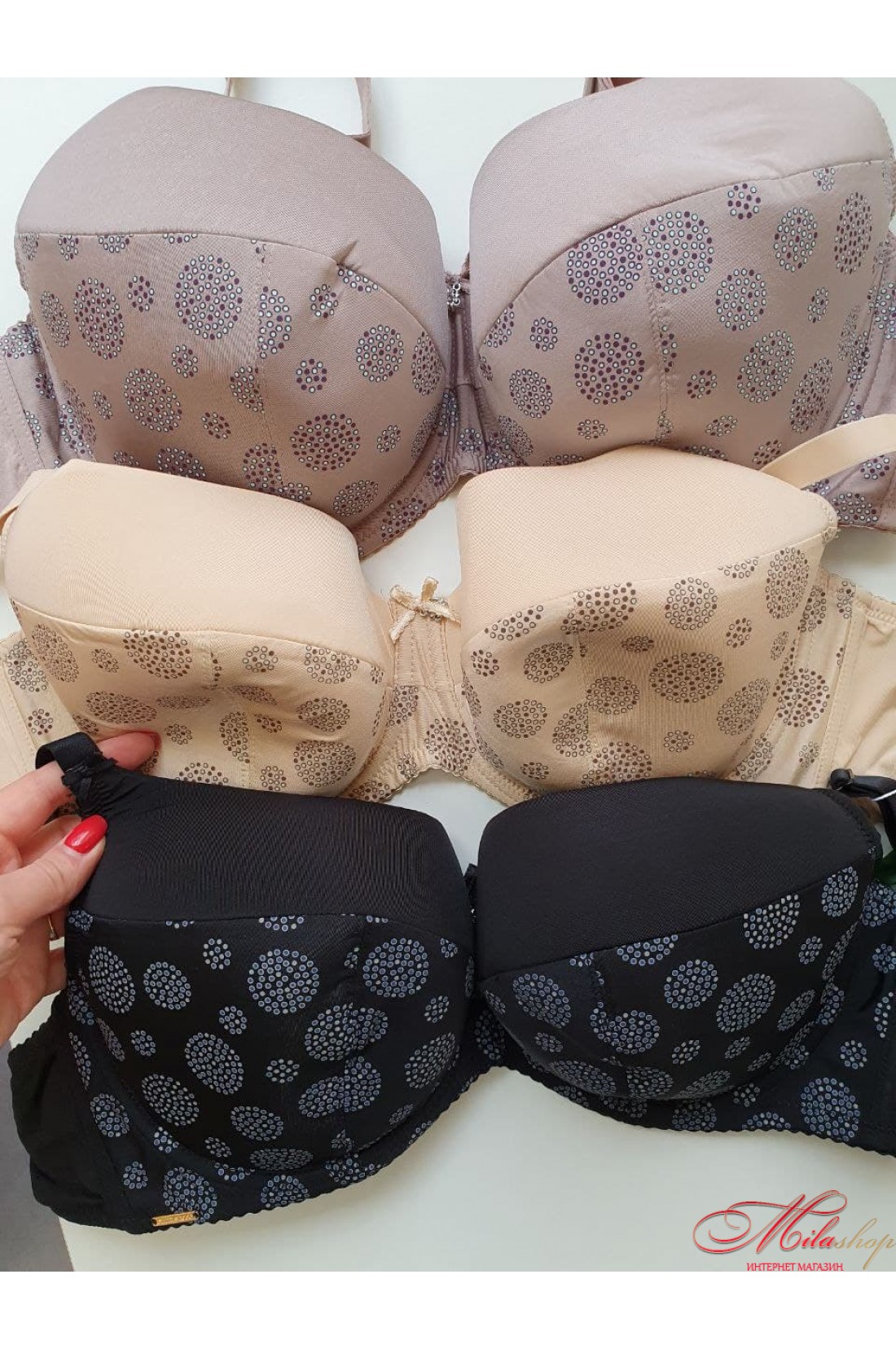 Комфортний бюстгальтер із тонкими поролоновими чашками. Пояс бюстгальтера з боковою кісточкою для кращої підтримки. Бретели незнімні, регулюються по всій довжині. Дуже комфортний і дихаючий.