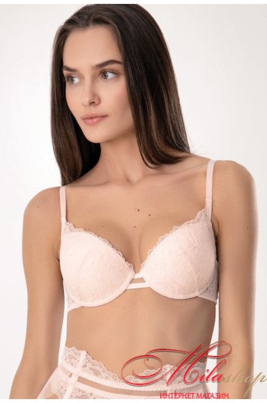 Бюстгальтер со встроенным push-up, формованные чашки на косточках. Выполнен из французского кружева. Чашки приподнимают грудь вверх и формируют соблазнительную линию декольте. Бретели не отстегиваются, регулируются по длине.