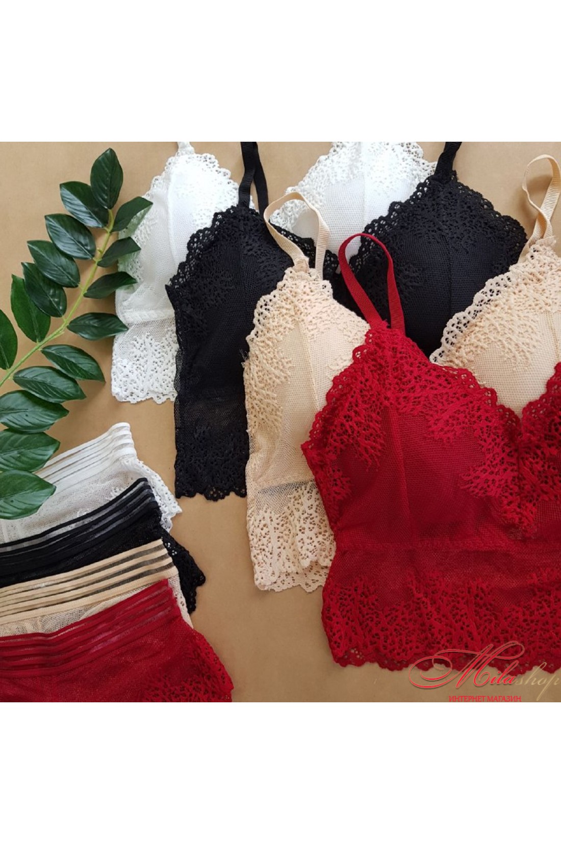 Роскошный комплект из кружева. Бюстгальтер-топ без кости, трусики слипы со средней линией талии.