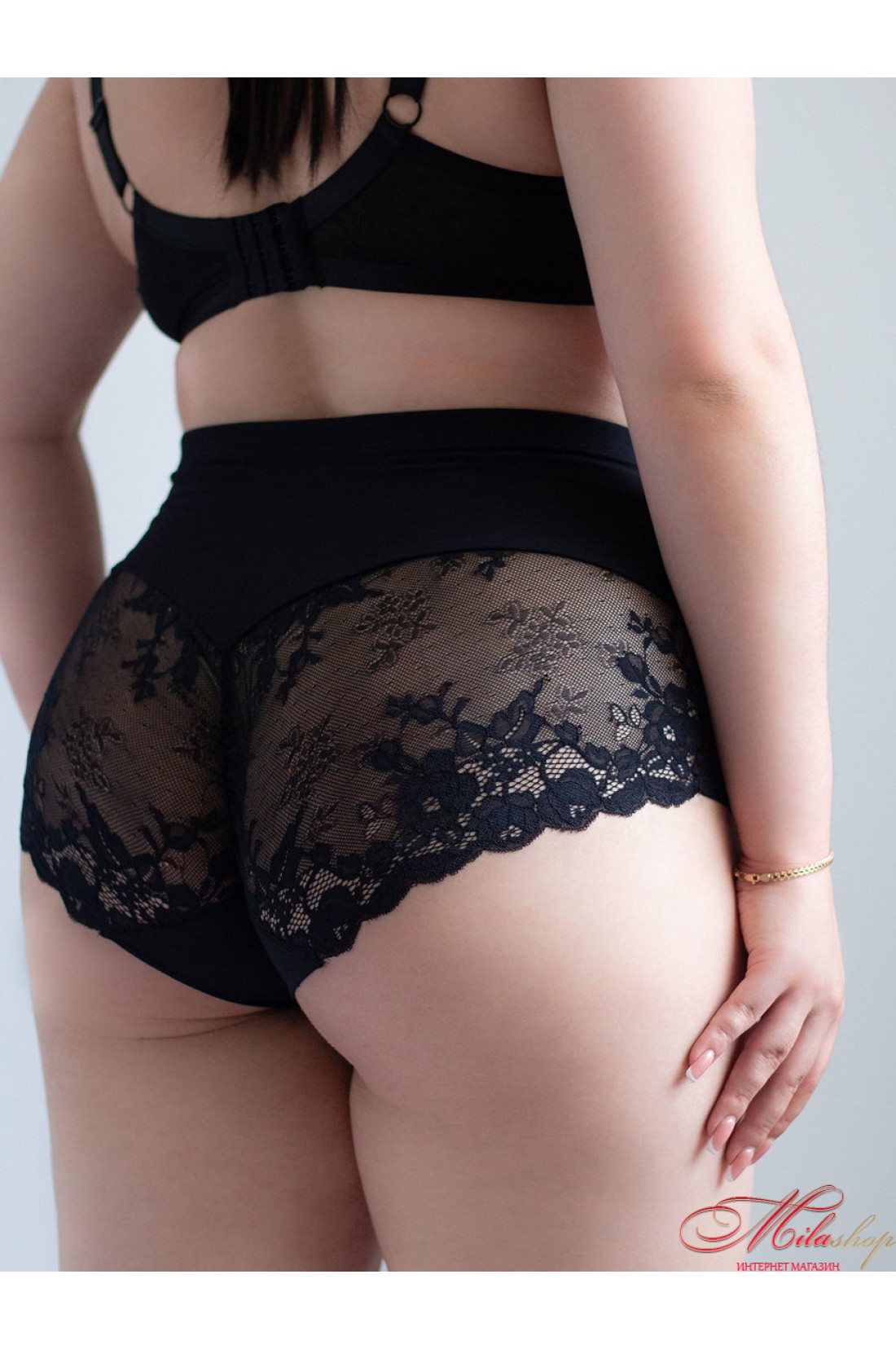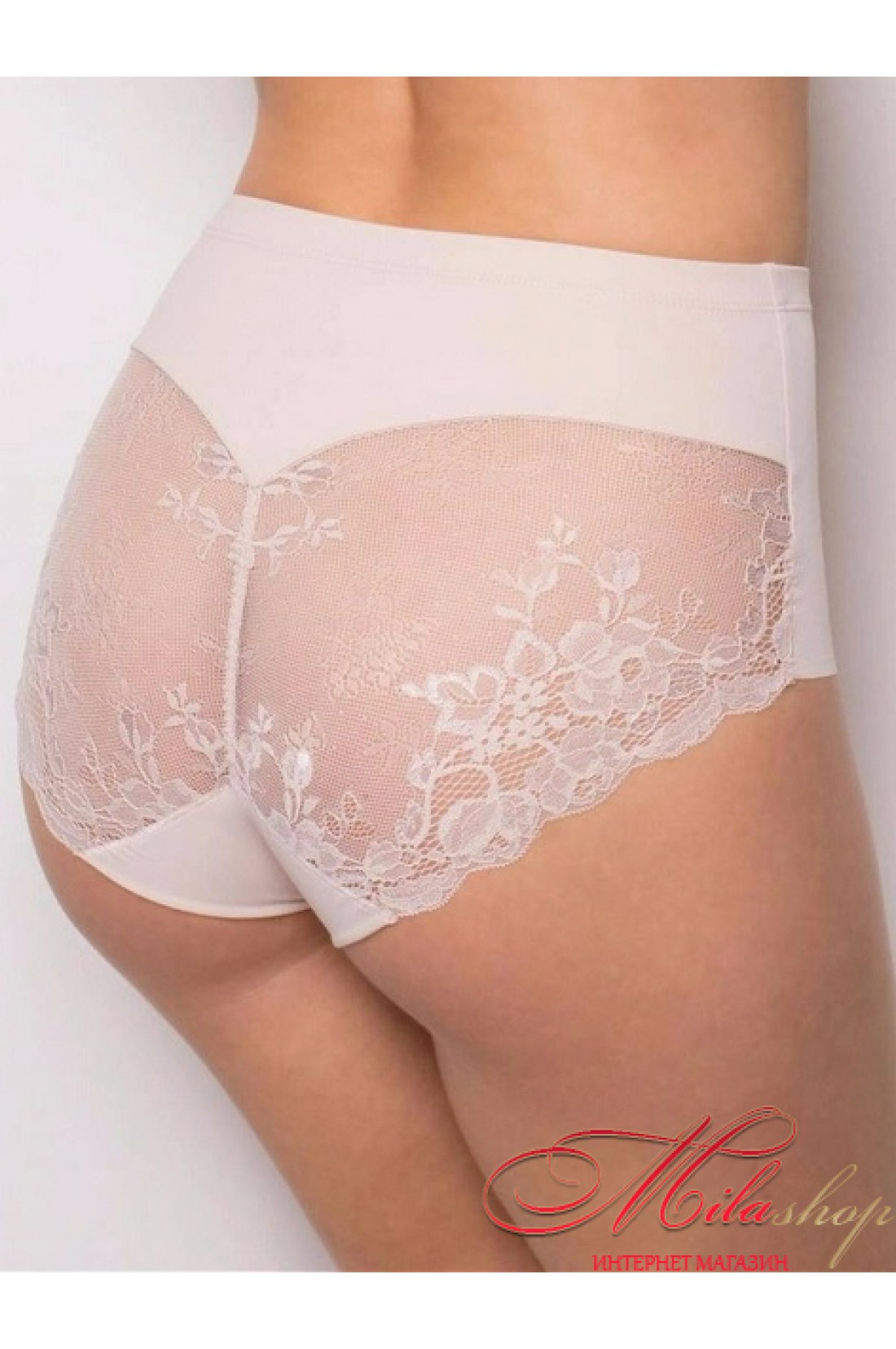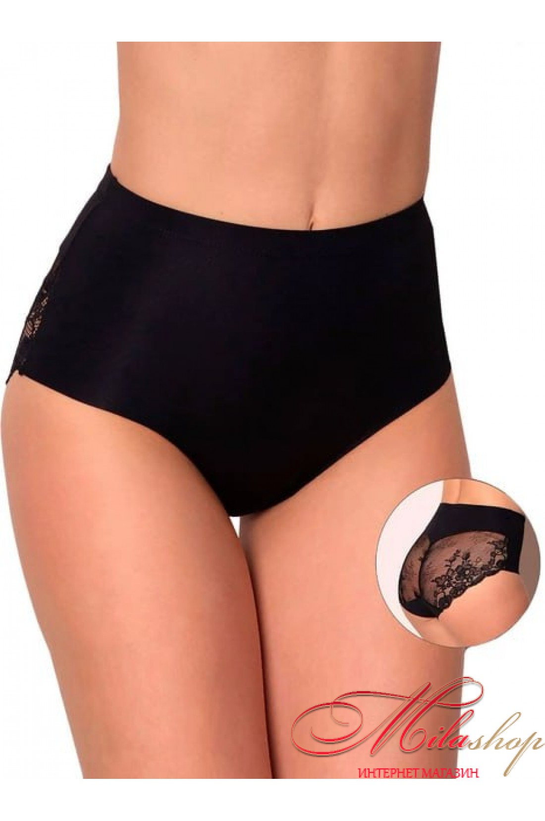 Жіночі трусики сліпи. Гладкі спереду та мереживні ззаду. Висока лінія талії.