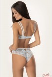 Трусики-бразиліана із плоского мережива. Наполовину прикривають сідниці, підкреслюючи їхню форму. Безшовні краю не виділяються під одягом. Підвищена V-подібна лінія талії. Бавовняна гігієнічна ластівка.