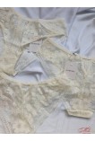 Трусики-бразиліана із плоского мережива. Наполовину прикривають сідниці, підкреслюючи їхню форму. Безшовні краю не виділяються під одягом. Підвищена V-подібна лінія талії. Бавовняна гігієнічна ластівка.