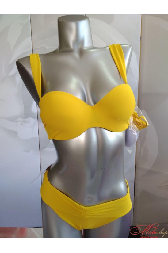 Купальник Anabel Arto 994-016 с твердой чашкой в желтом цвете. В комплекте идет тонкая бретель с возможностью завязаь купальник на шее.