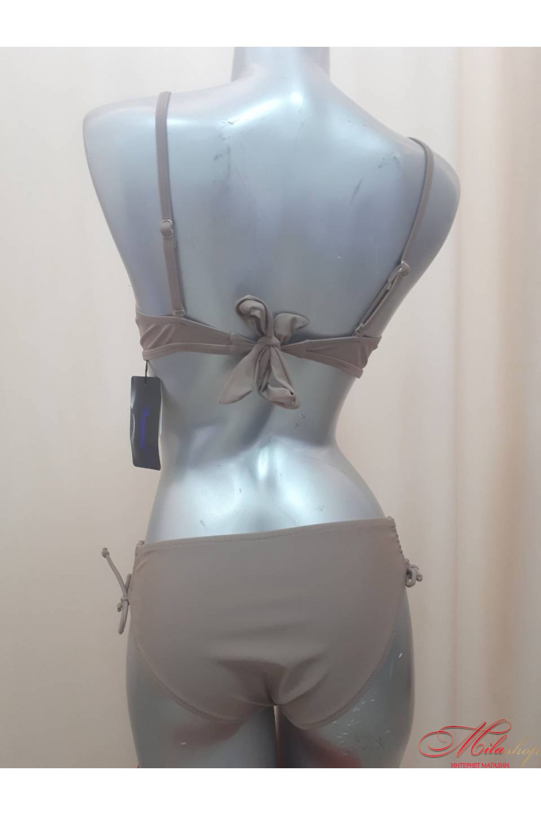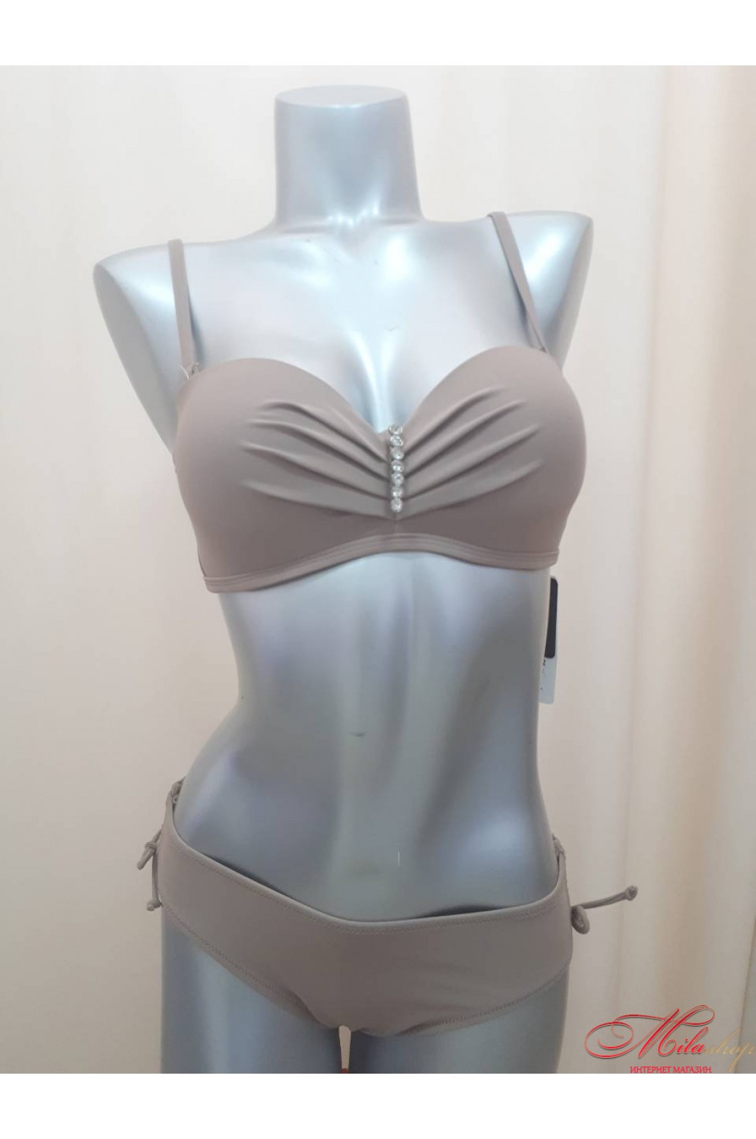 Купальник бандо с трусиками-слип и декоративной брошью SIsianna 58122. В трендовом бежевом цвете.