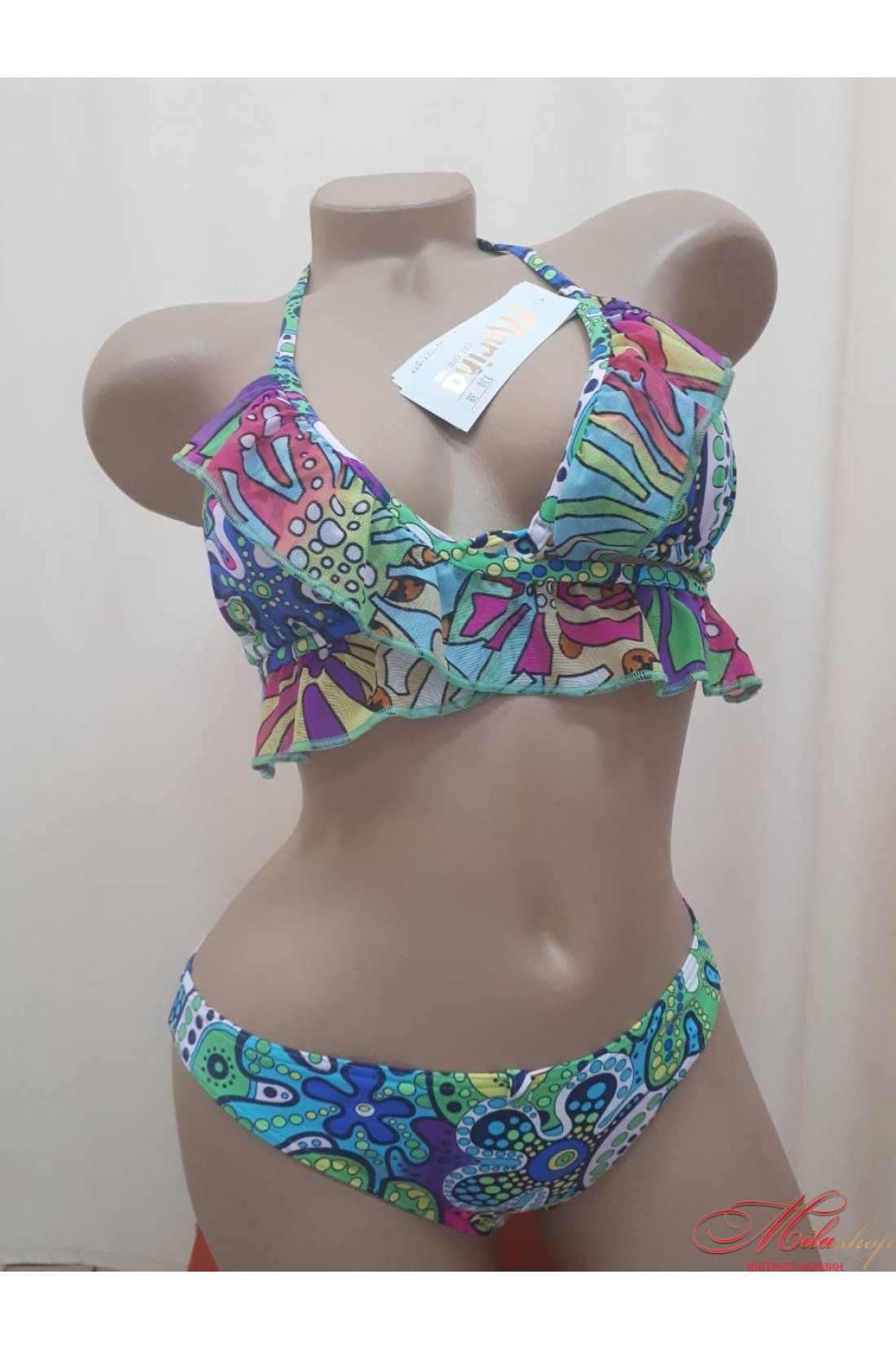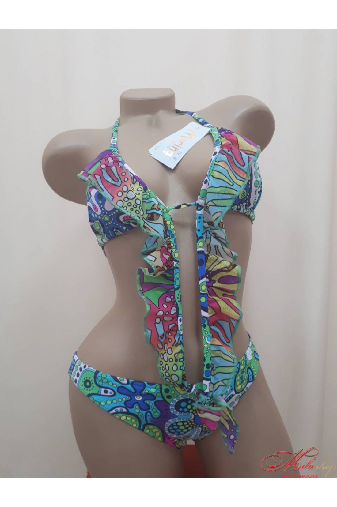 Купальник-монокини из коллекции купальников тм Marina. С оригинальной рюшей. Молодежная модель купальника с вставной чашкой. Лиф завязывается на шее, плавки-слип.