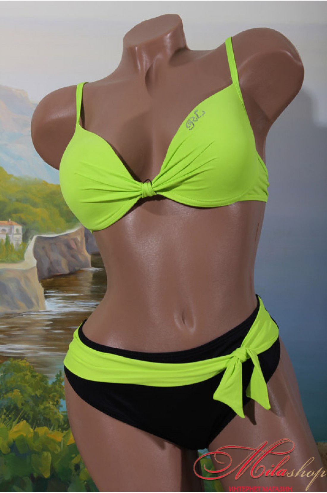 Классическая модель купальника. Бюстгальтер с эффектом пуш-ап, трусики с низкой линией талии.