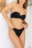 Купальник з чашкою балконет із пуш-ап на кісточках, без бретелів. Спинка на застібці. Трусики Бразиліана з підвищеною лінією талії. Трусики можна вибрати розміром, М, Л.