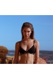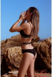Купальник з бюстгальтером чашками трикутниками, без кісточок, під грудьми м'яка брендована гумка, не знімні бретелі і регулюються по довжині. Спинка на застібці. Плавки бразиліана із завищеною лінією талії, із м'якою брендованою гумкою. Плавки можна вибрати розміром С, М, Л, Хл.