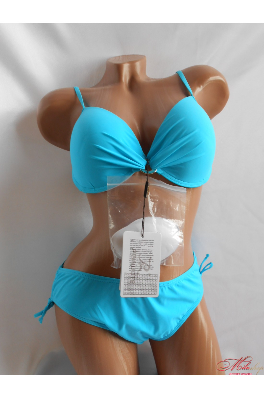 Раздельный купальник состоящий из бюстгальтера со съемным пуш- апом и классических трусиков в тон купальнику. На бюстгальтере имеется украшение в виде кольца.