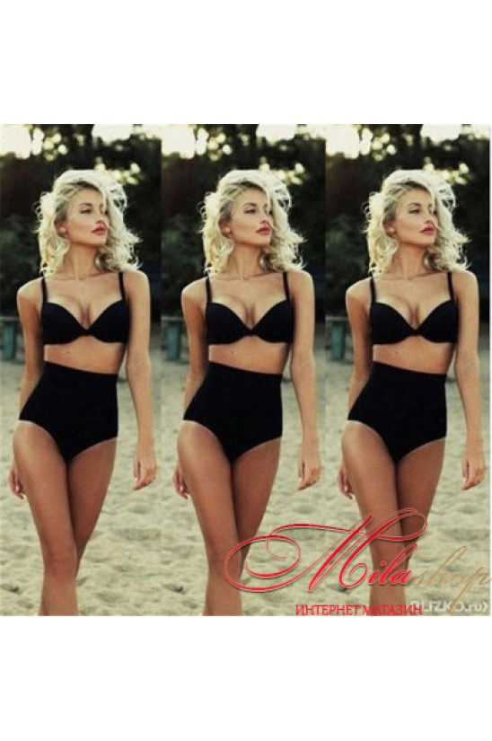 Классический купальник в ретро-стиле. Бюстгальтер с эффектом пуш-ап, трусики высокие с широким боком.