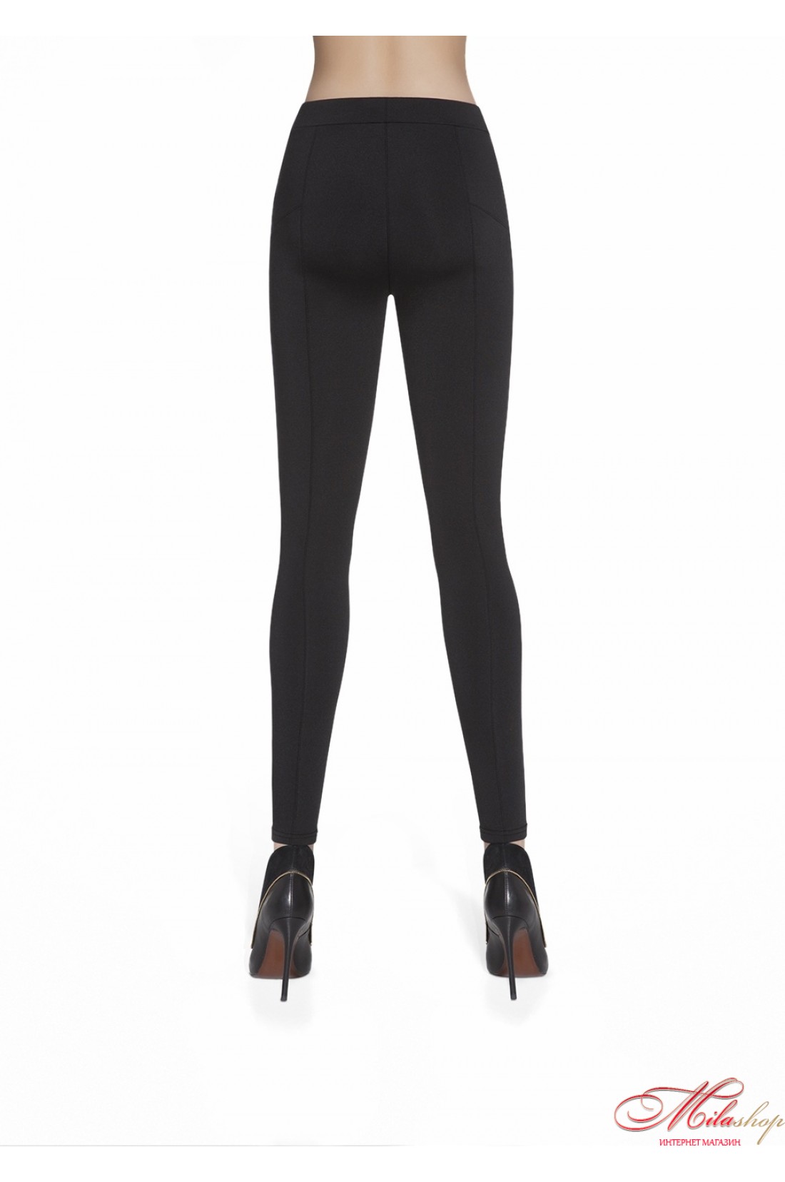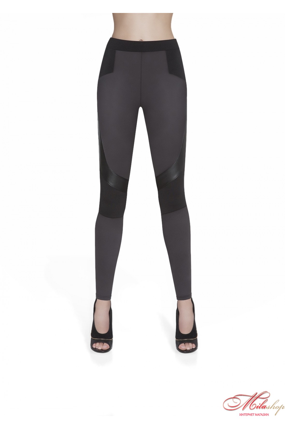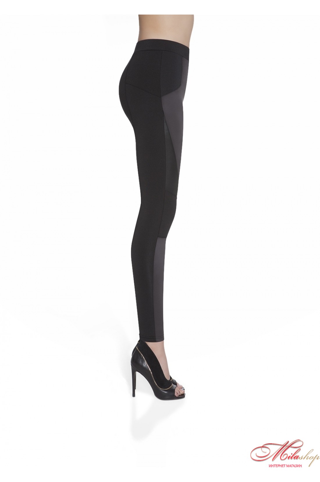 Леггинсы из эластичной вязки с эко-кожаными вставками