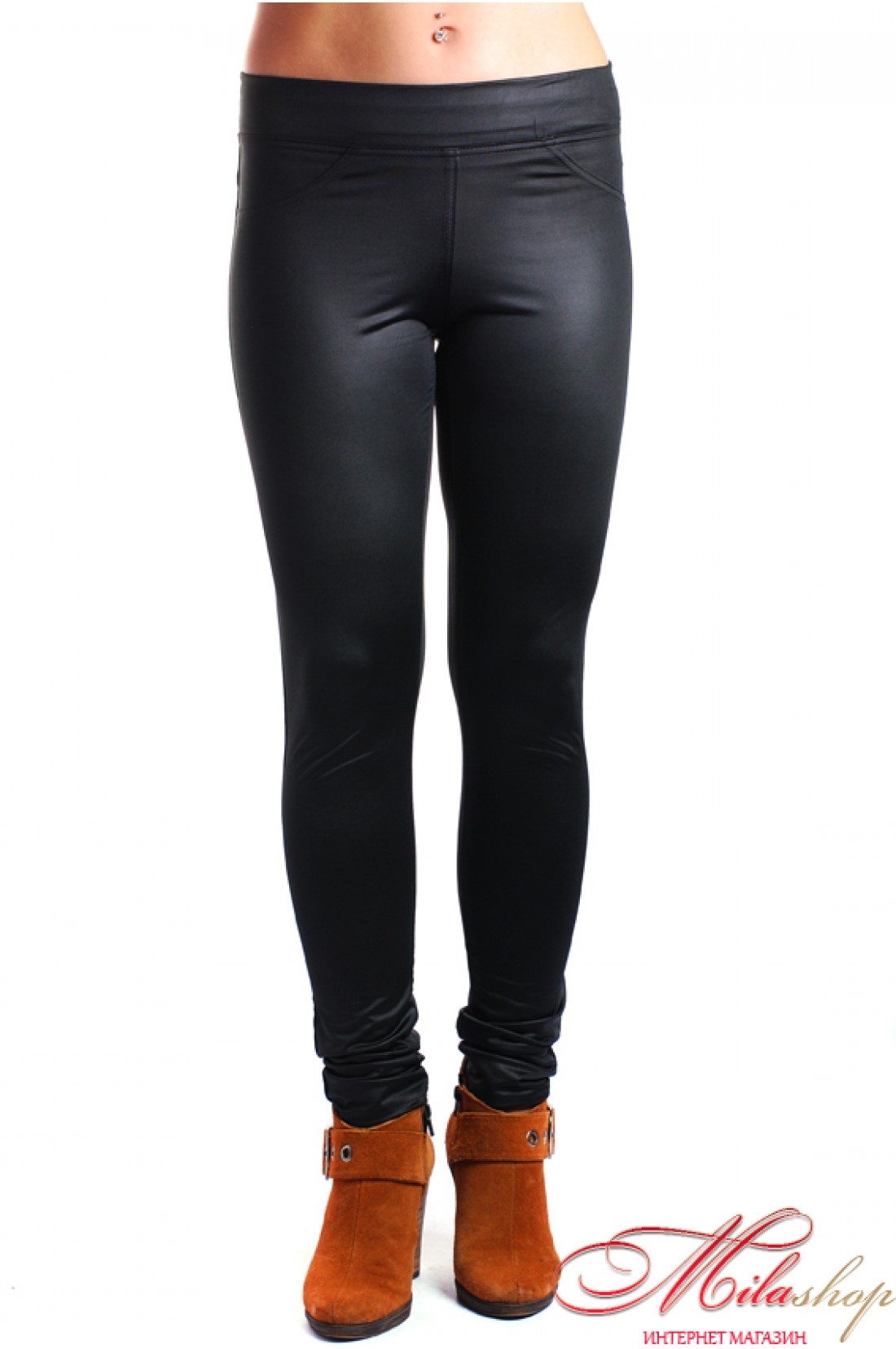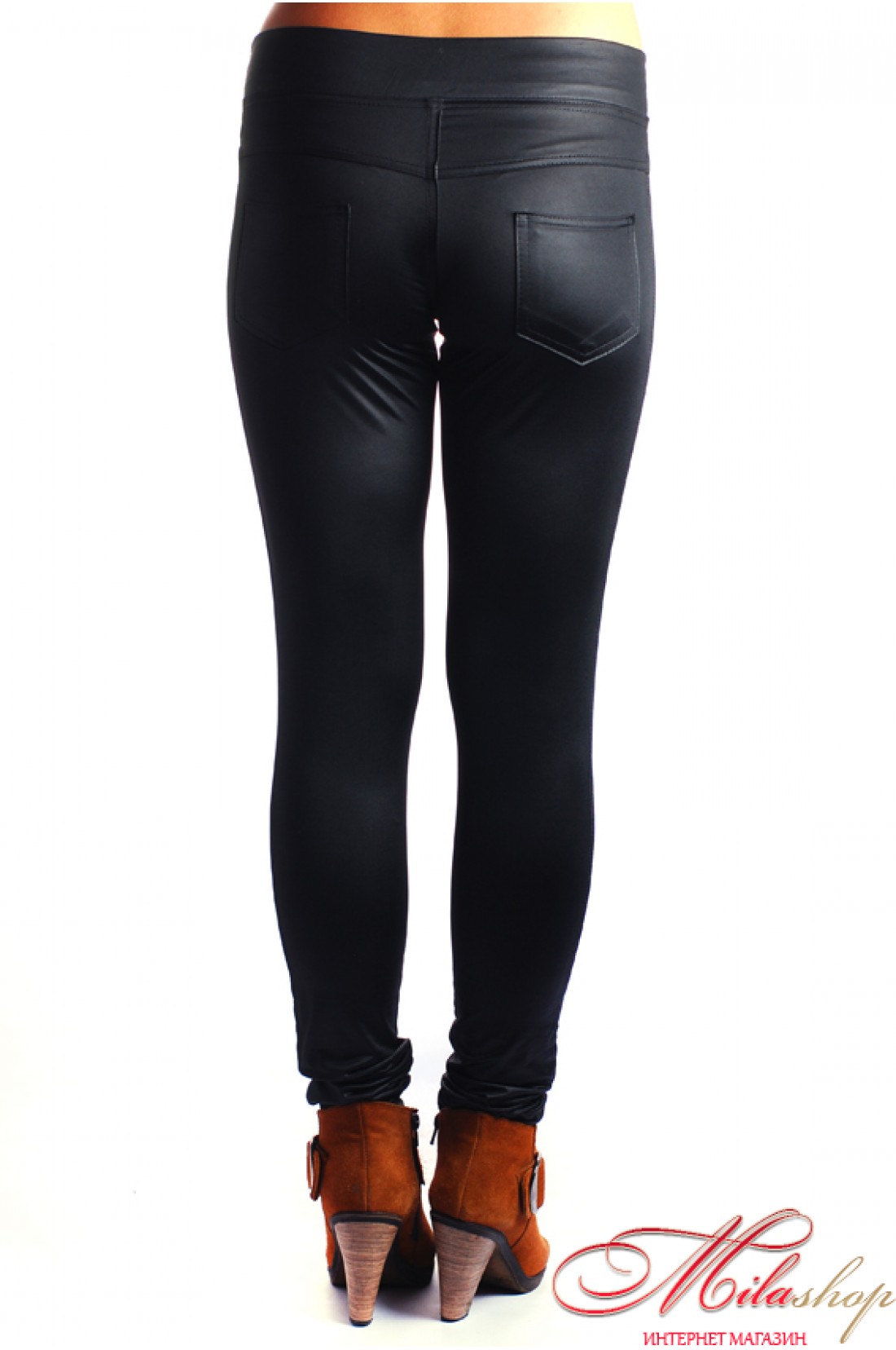 Молодежные лосины с напылением имитирующим кожу. Сзади два накладных кармана. Низкая линия талии.