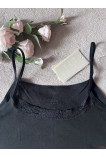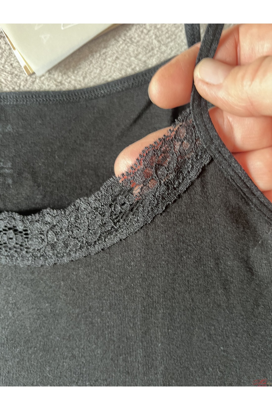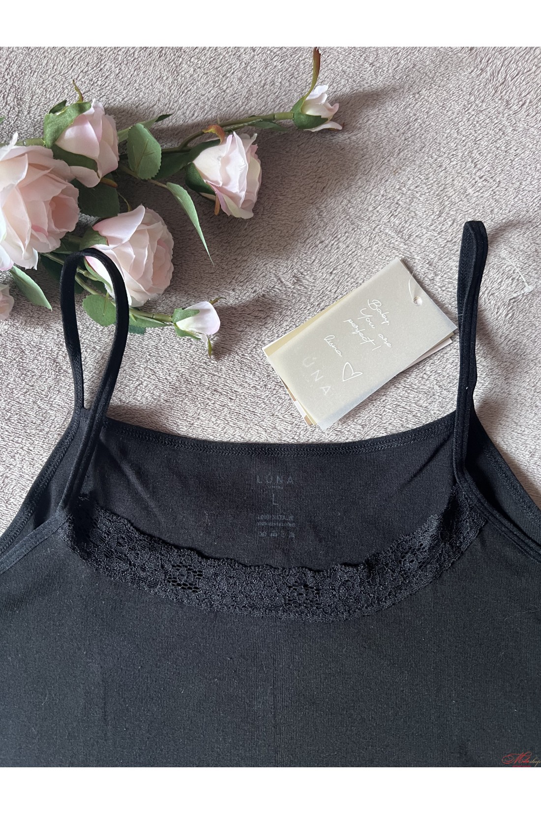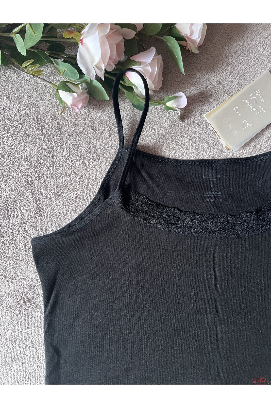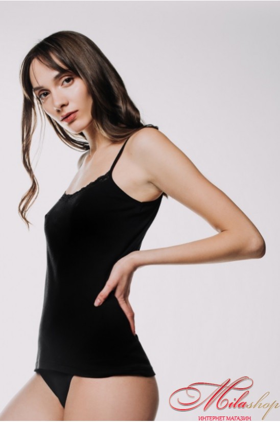 Майка жіноча Natalie - дуже жіночна майка з тоненькими бретелями і широким мереживом по краю вирізу. Може носитися як білизна і як одяг. Натуральний бавовняний матеріал підтримує оптимальну температуру тіла та дозволяє йому дихати.