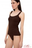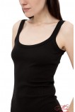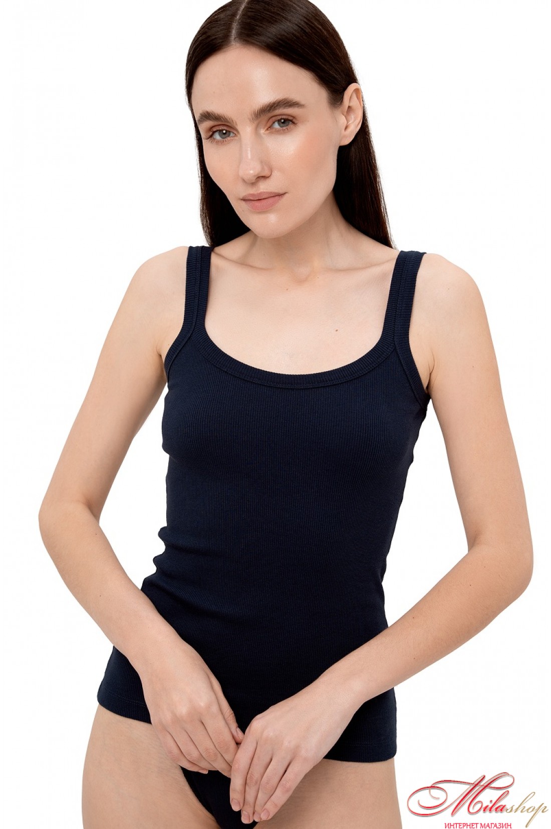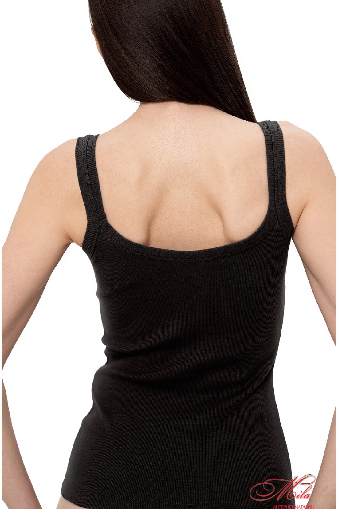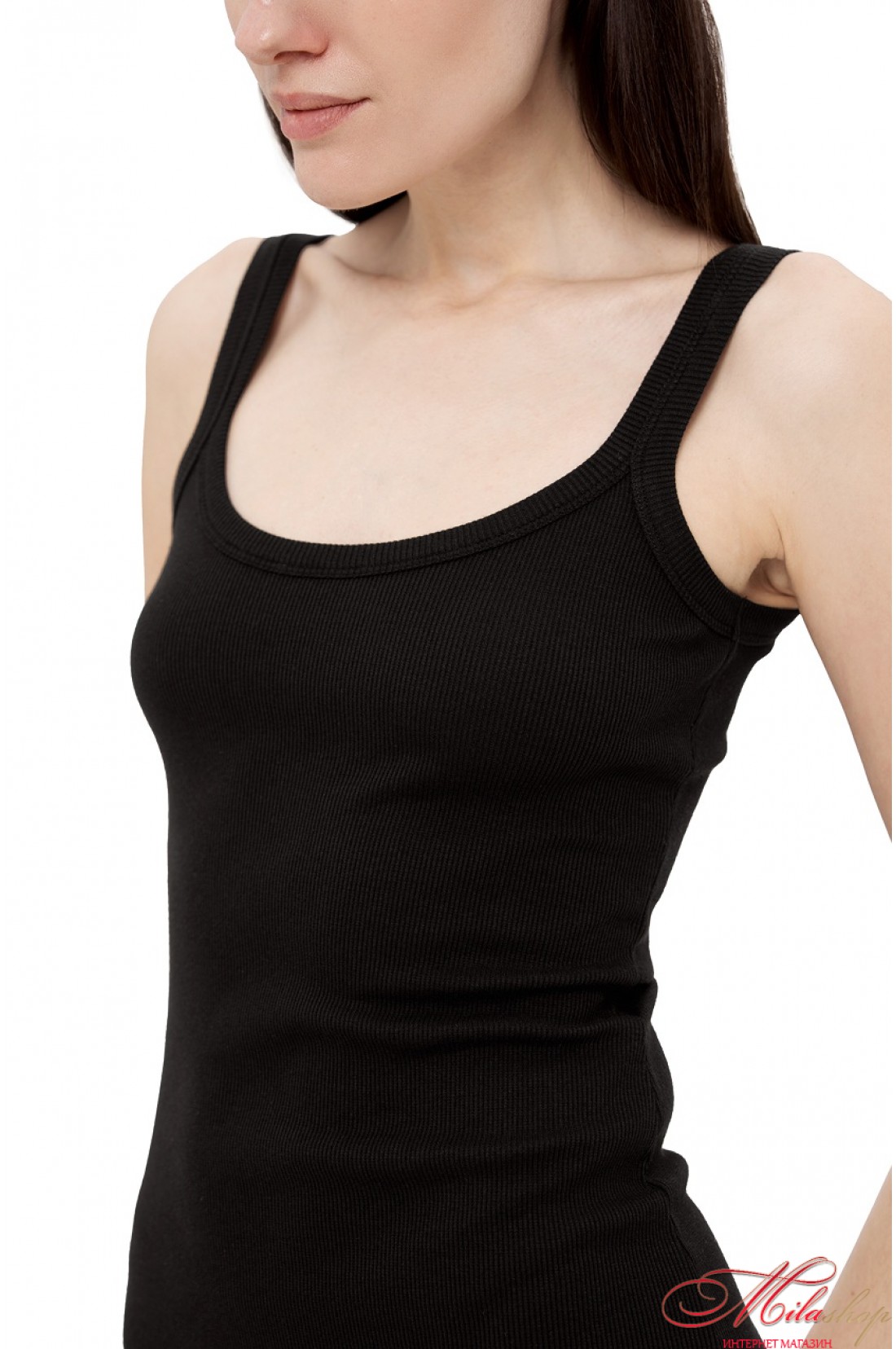 Майка прилеглого силуету в рубчик, на широких брителях. Склад: 95% бавовна, 5% еластан.