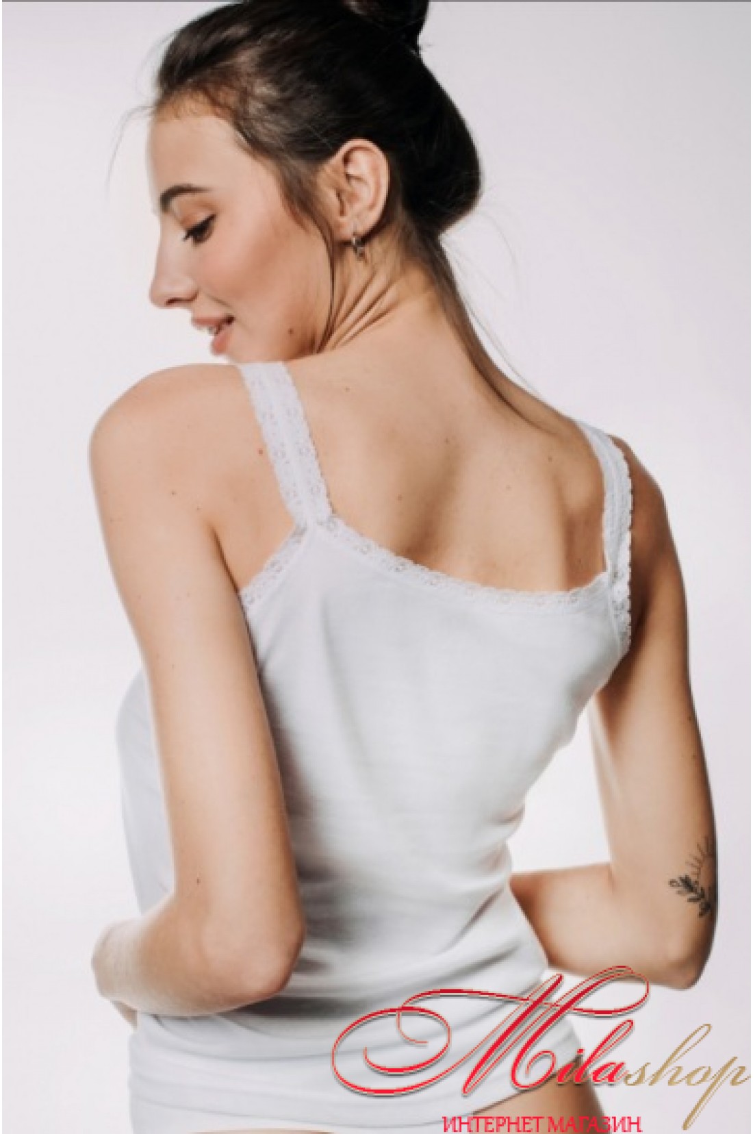 Майка жіноча Sofia - це майка бавовняна з тонким мереживом по всьому верху виробу. Мереживо також охоплює краї середньої ширини бретелів. Дуже ніжна та жіночна модель, приємна до тіла та зручна в носінні. 100% бавовняний матеріал дозволяє тілу дихати. Має конструкцію "tube". Дана конструкція відрізняється тим, що основне полотно плететься у формі «труби», щоб надалі виріб не мав бічних швів. Таким чином маєчка має гладку конструкцію і не виділяється під одягом.