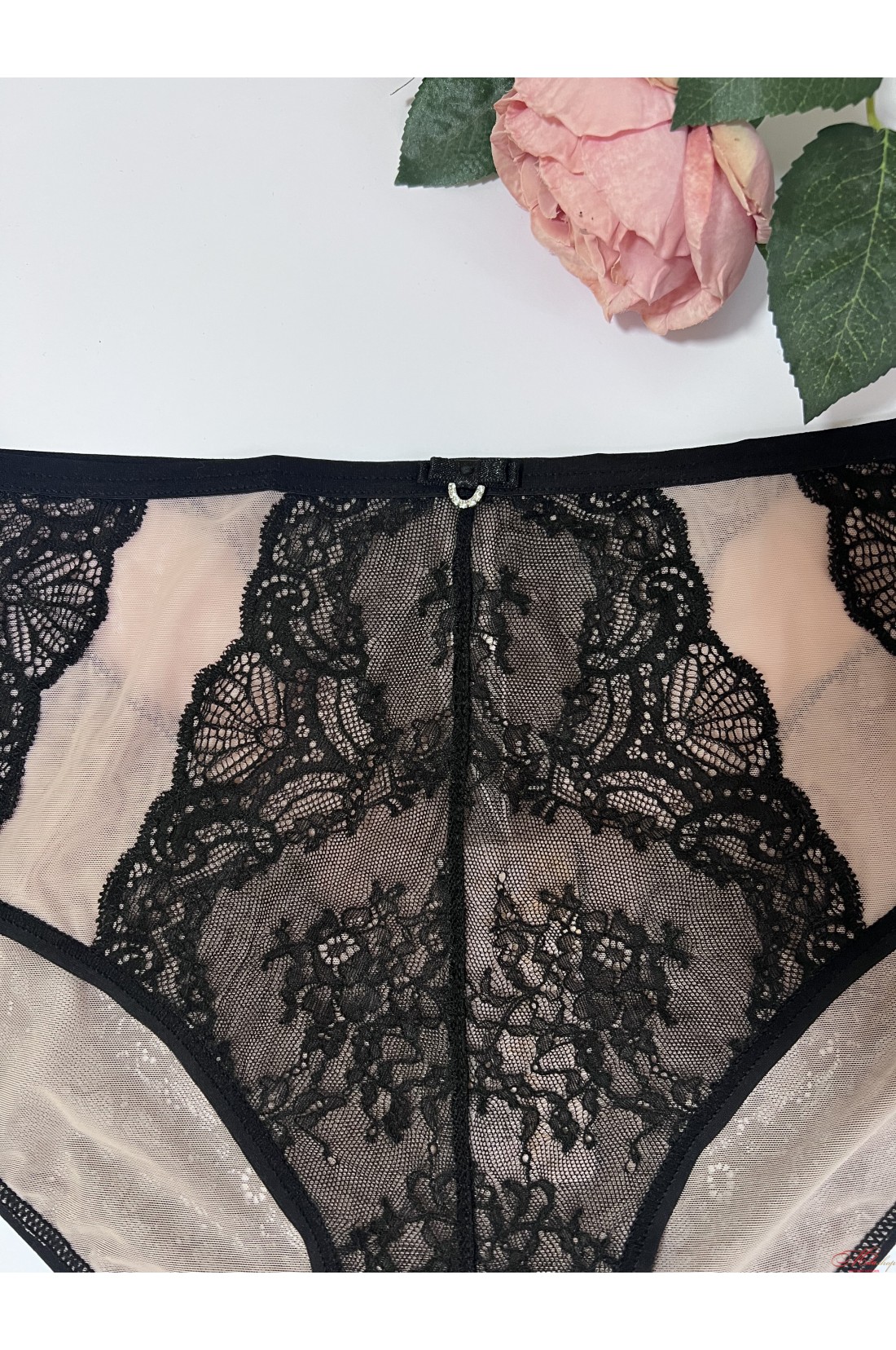 Вишукані трусики сліп виконані з сітчастого полотна та гарного мережива. Середня лінія талії.