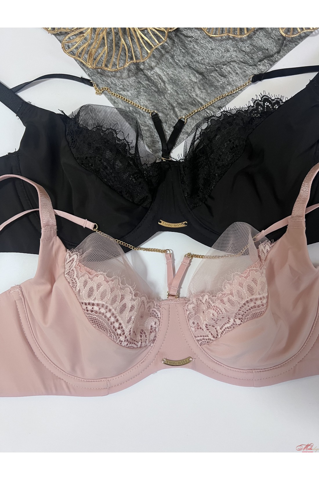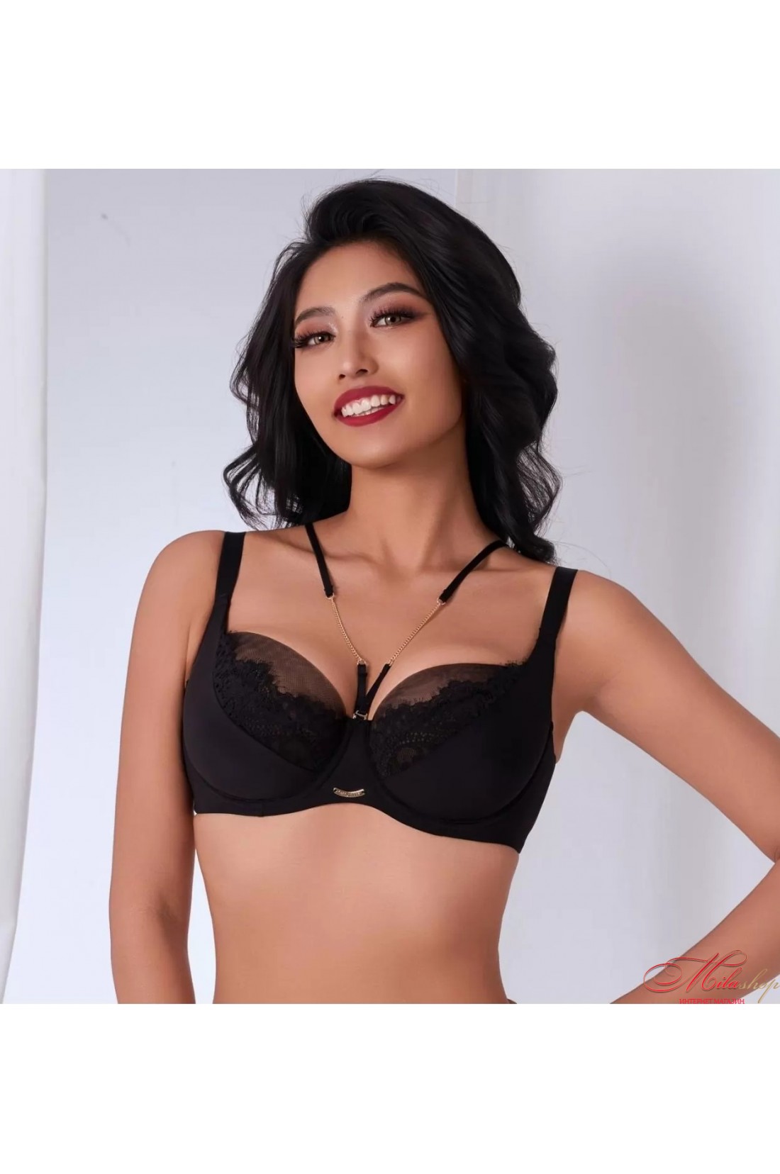 Бюстгальтер з м'якою чашкою на кісточках, прикрашений мікросіточкою та мереживом. Стропи регульовані, знімні. Незнімні бретелі регулюються по довжині. Чудова підтримка для чудових форм!