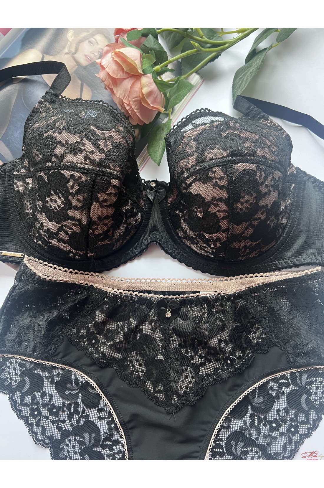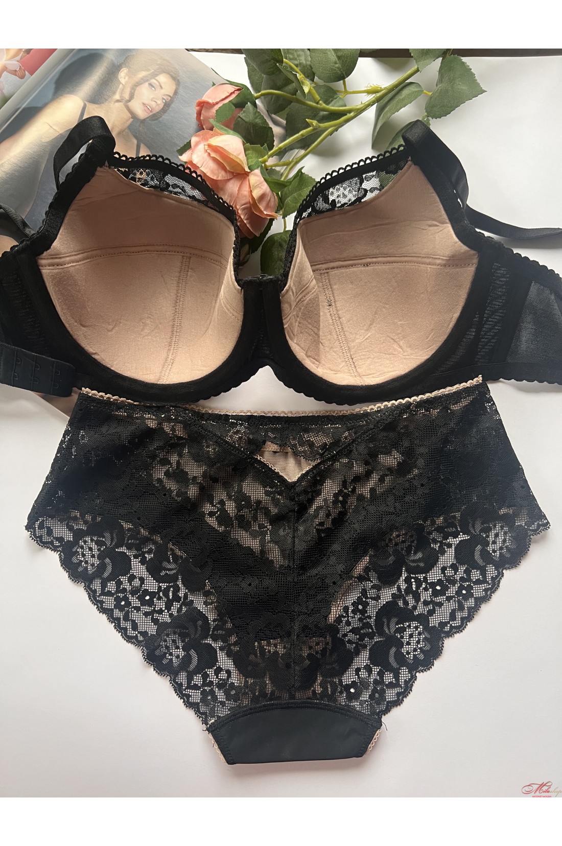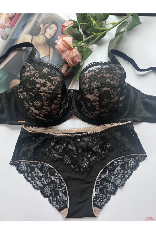 Мереживний комплект Lanny Mode 11730+51730 чорно-бежевий
