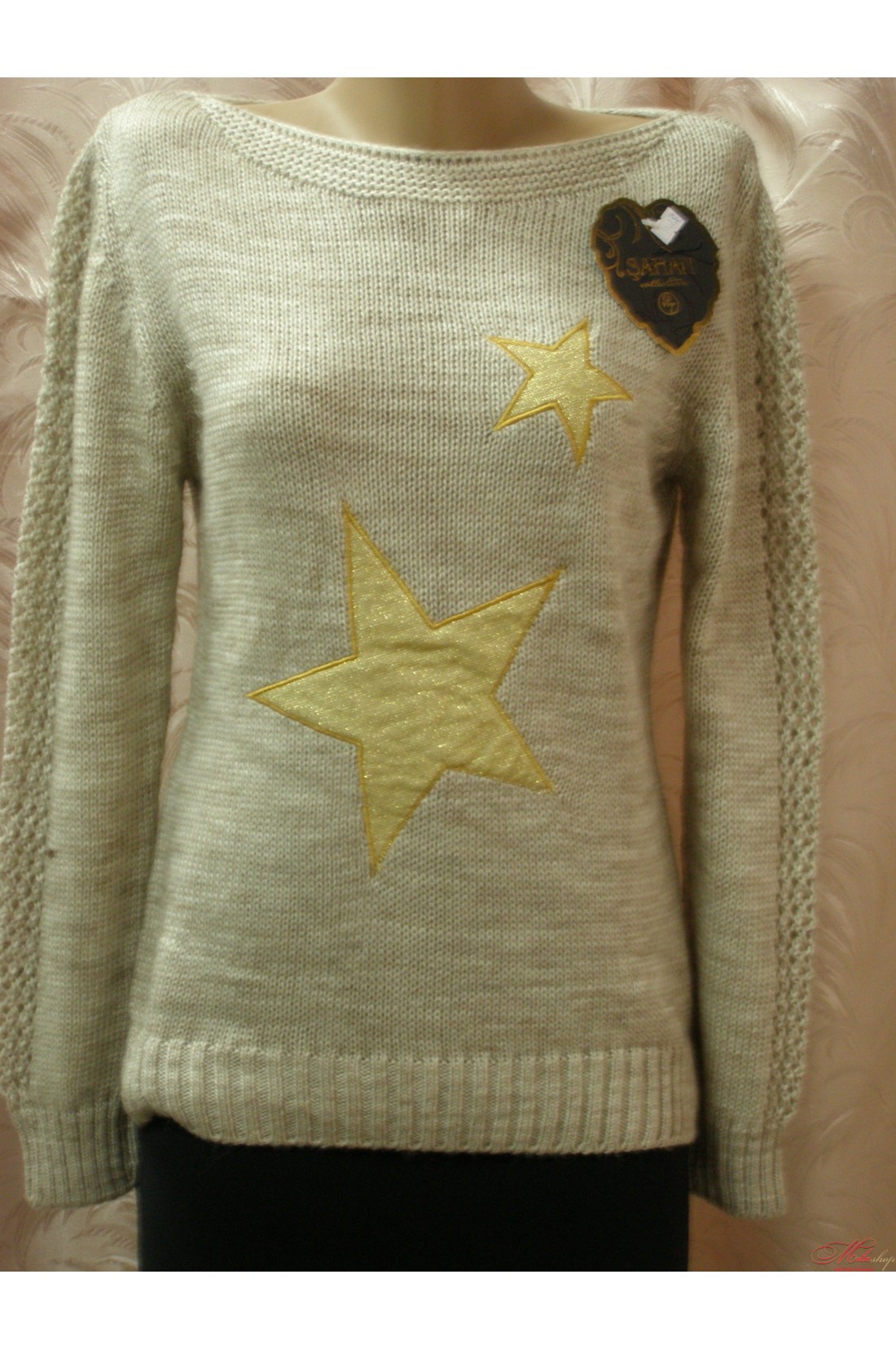 Стильный, молодежный свитер, спереди украшен звездами, плечи украшены оригинальным плетением.Размер универсальный (хорошо садится от 44-48)