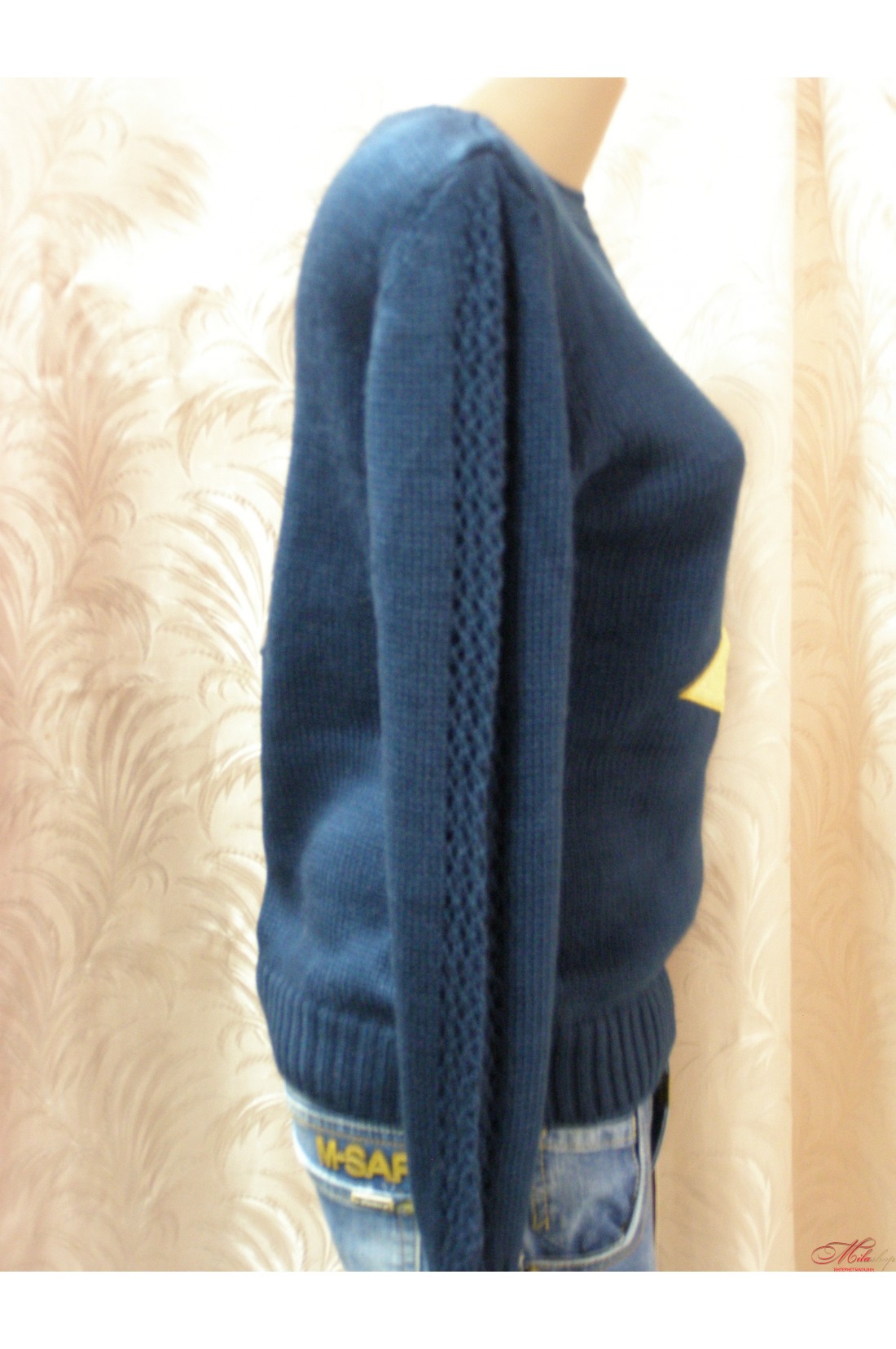 Стильный, молодежный свитер, спереди украшен звездами, плечи украшены оригинальным плетением.Размер универсальный (хорошо садится от 44-48)