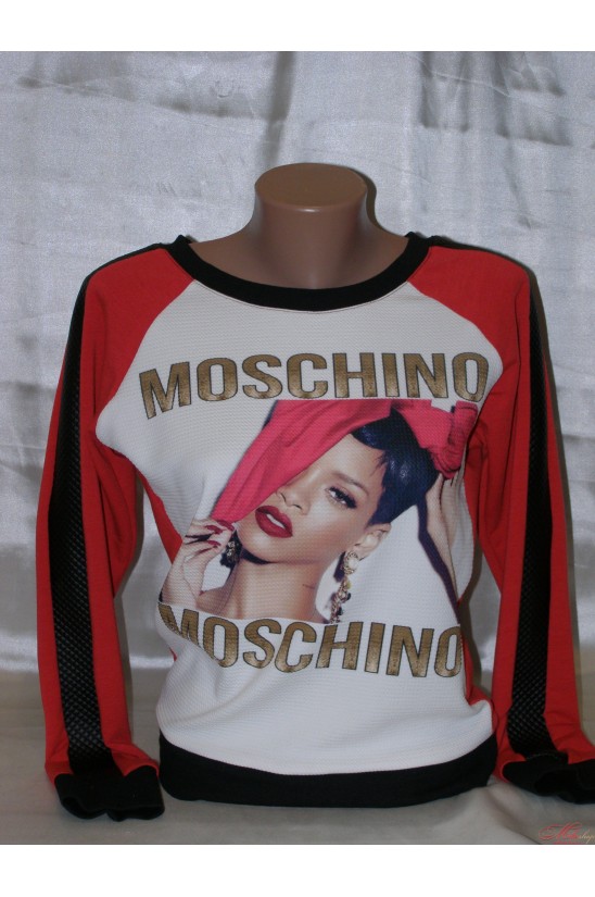Стильный, молодежный свитшот. Не утепленный. Хорошо сочетается с джинсами и спортивными штанами. Нежный и приятный к телу. Спереди урашен рисунком и логотипом известного бренда Moschino