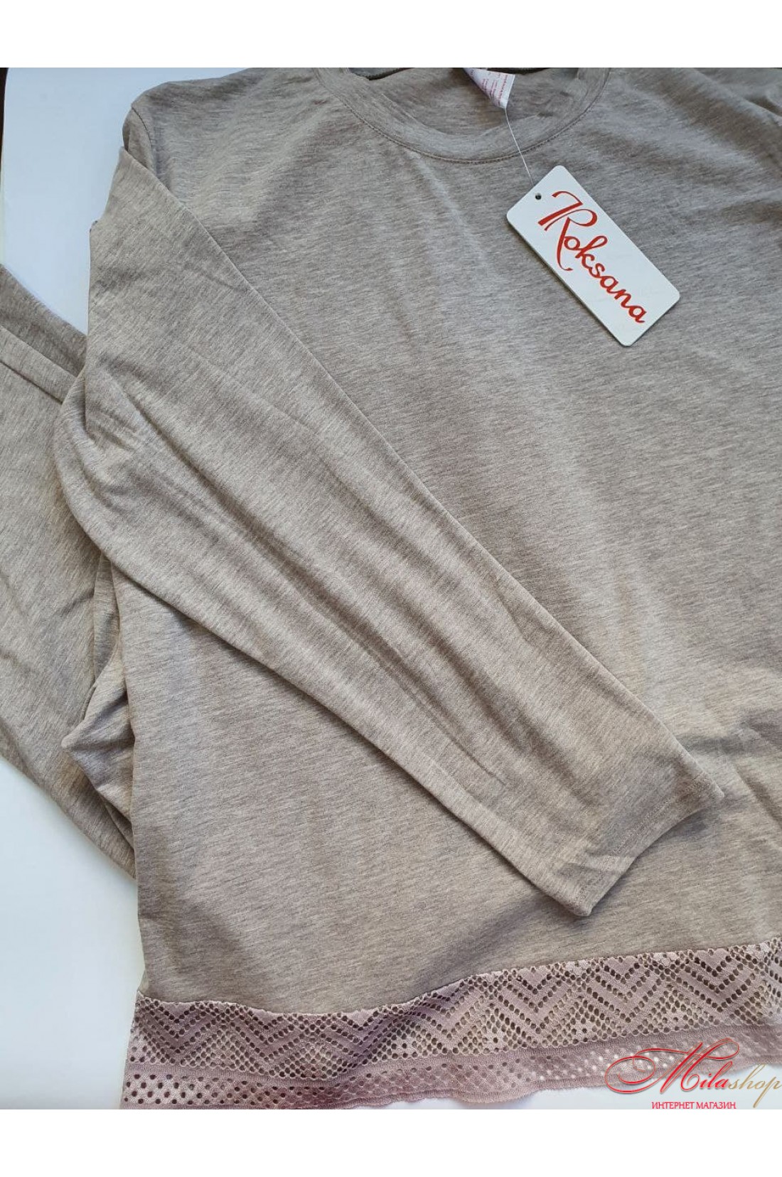 Жіноча піжама виконана з бавовни, капучіно. Джемпер з прикрасою у вигляді мережива внизу виробу. Штани напівприлеглі.