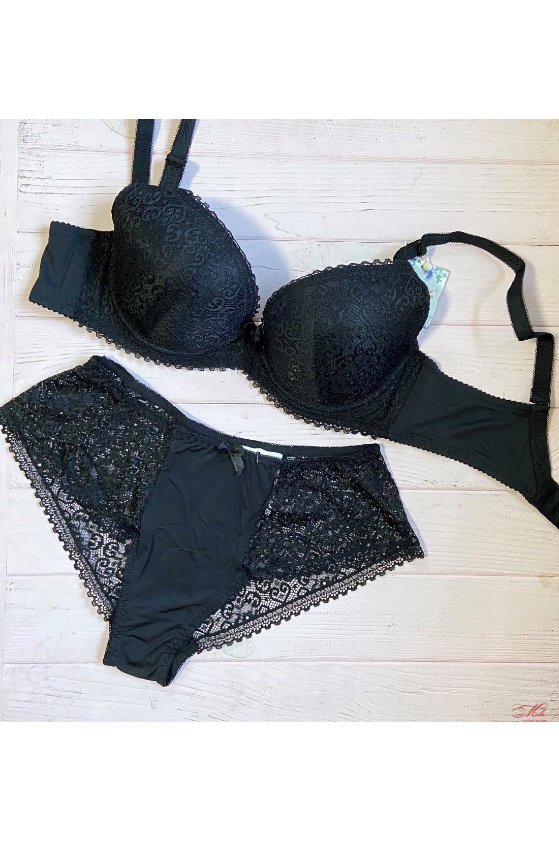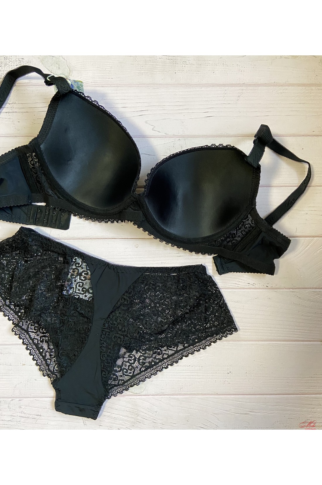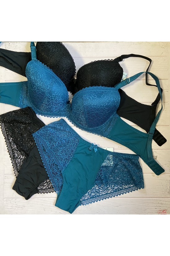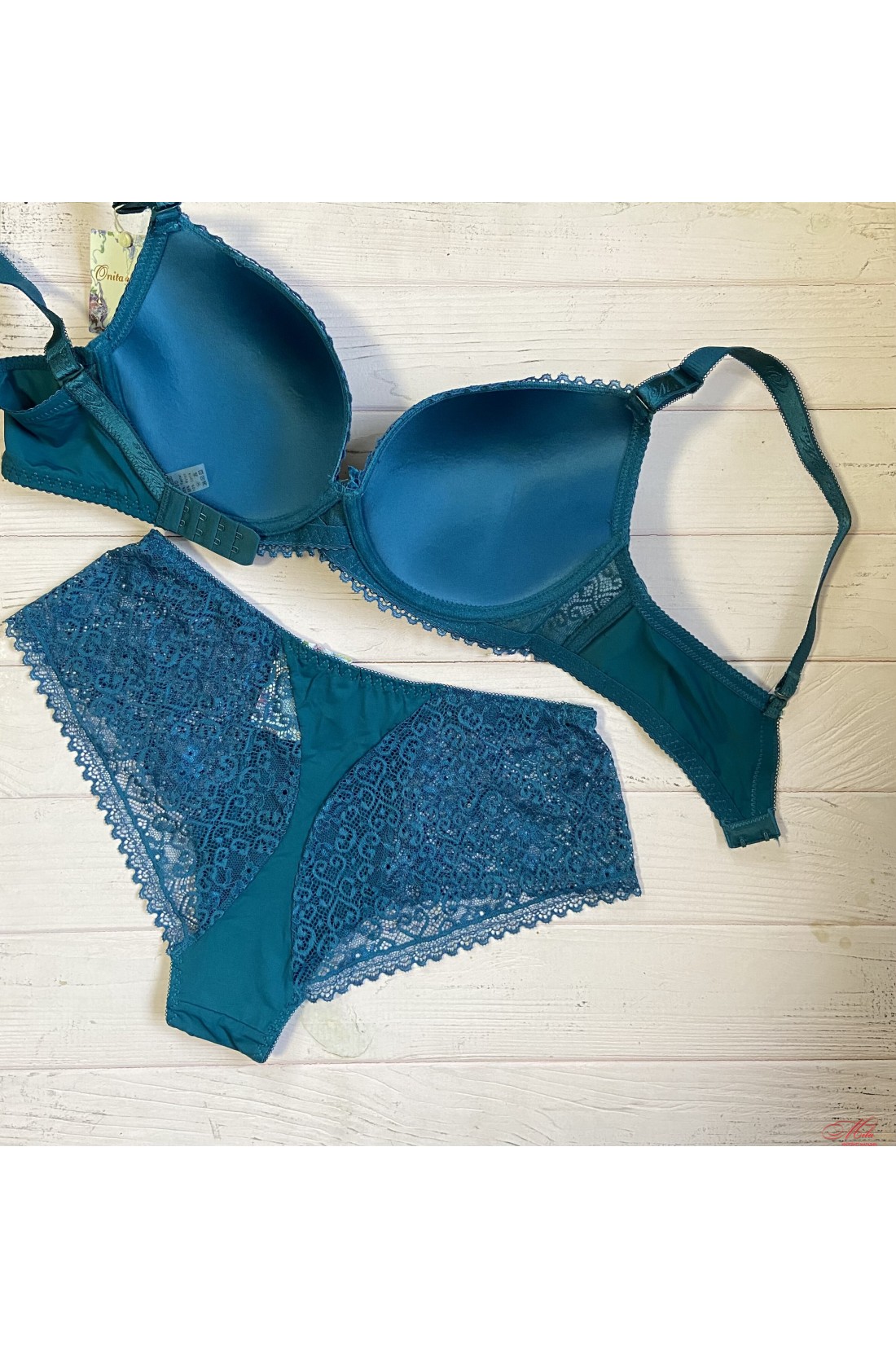 Прекрасний комплект, бюстгальтер та трусики прикрашені мереживом, бюстгальтер на тонкому поролоні, трусики сліпи. Добре збирає та підтримує груди.