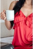 Яркая сорочка из сатина с рюшами. Приталенный крой, тонкие регулируемые бретели.