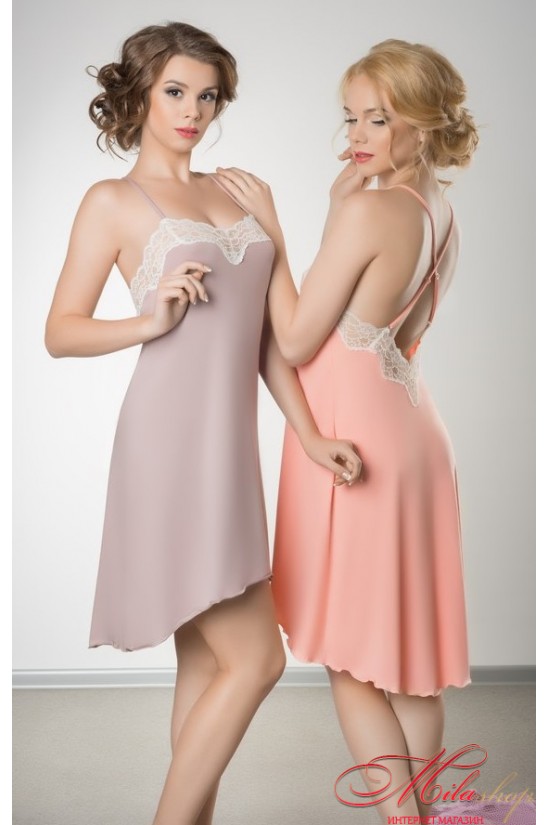 Нежная, чувственная сорочка на тоненьких, регулируемых бретелях. Линия декольте украшены мягким, эластичным кружевом.