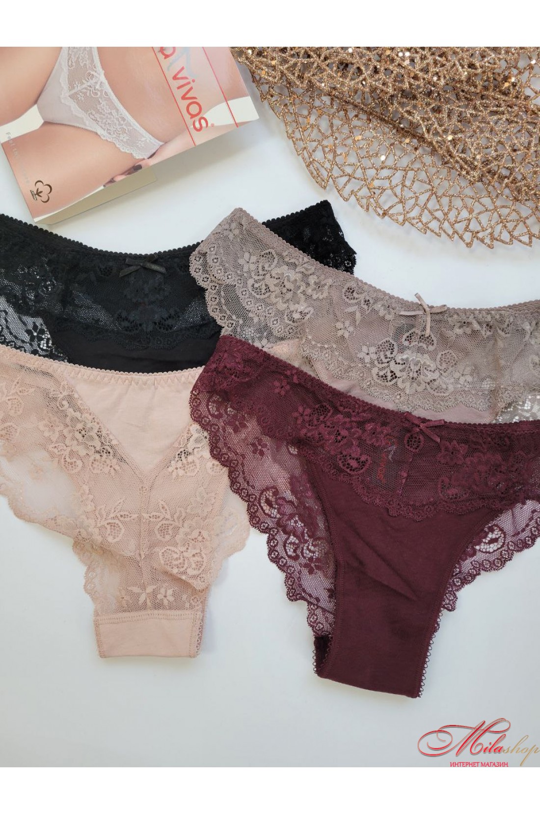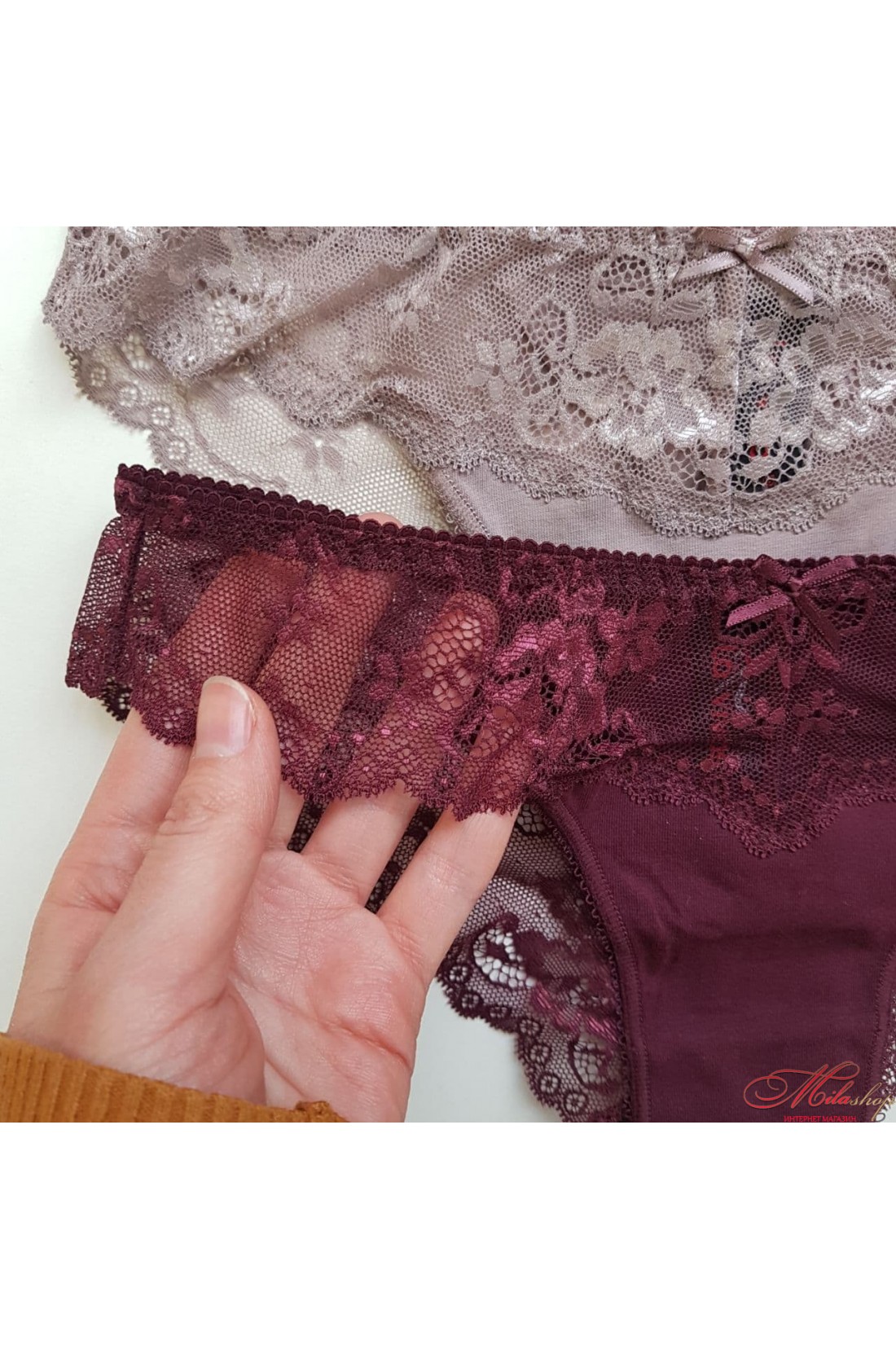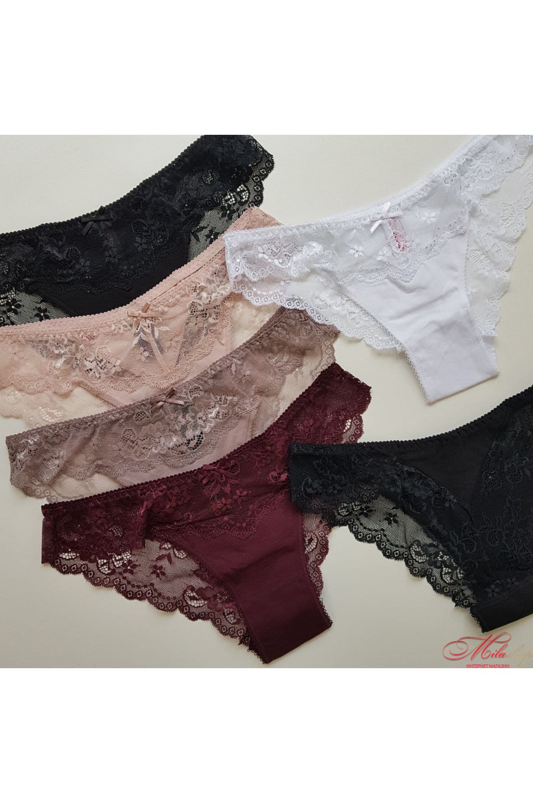 Женские трусики-бразилиана с низкой линией талии. Выполнены из нежнейшего хлопка и кружева.