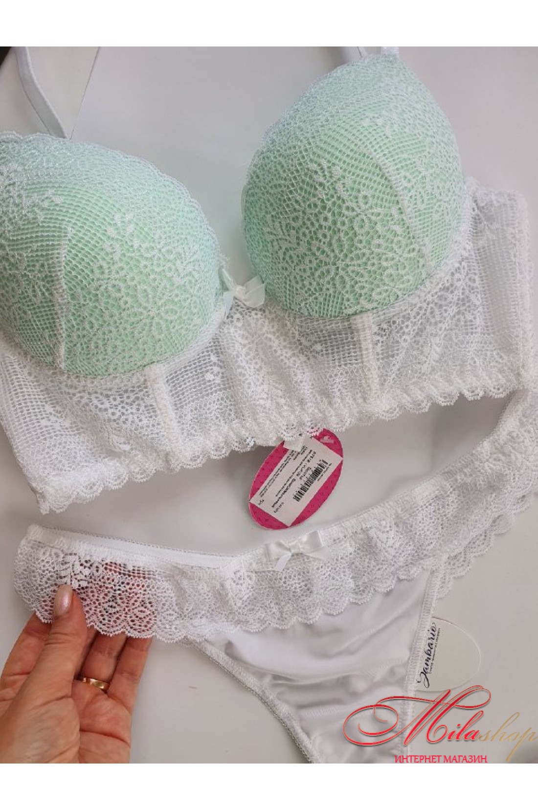 Комплект из нежнейшего кружева. Бюстгальтер с эффектом пуш-ап, трусики стринги.
