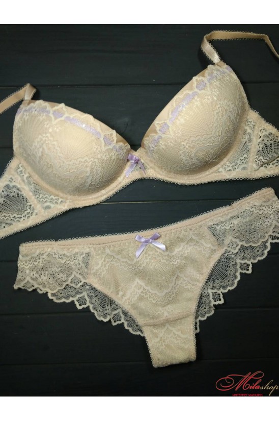 Элегантный комплект из кружева. Бюстгальтер пуш-ап, трусики бразилиана.