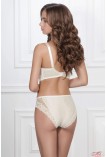 Напівдубльований бюстгальтер для підтримки пишних грудей, нижня частина чашок із тонкого поролону, верхня з делікатного німецького мережива. На кісточках широкі бретелі не відстібаються, регулюються по довжині, знімають навантаження зі спини. Гладка спинка; застібка на спині: 2 гачки на 2 позиції.