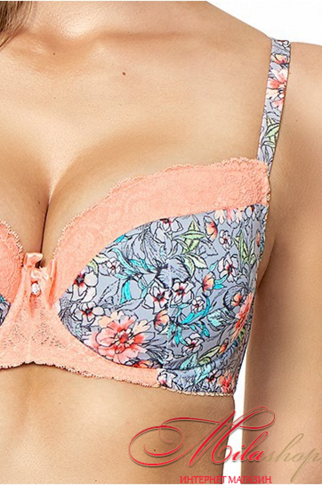 Красивий бюстгальтер піднімає груди. Чашки прикрашені гарним мереживом. Бретели регулюються за довжиною.