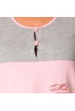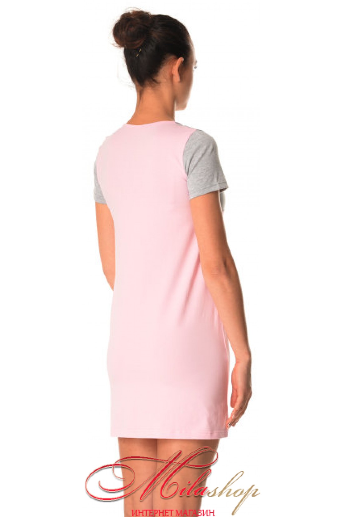 Данный вариант ночной рубашки будет радовать вас новомодным дизайном, практичностью и легкостью в уходе. Изделие гармонично сочетает в единую композицию пастельный розовый и серый цвета. Полуприталенный силуэт - комфорт и удобство при ношении. Модель несколько расширена снизу - ощущение легкости во время движения. Застежка на пуговицах - оригинальный декоративный элемент. Короткий рукав, круглый горловина с окантовкой. Контрастные вставки цвета серый меланж - стильный и выразительный дизайн. Модель пошита в современном стиле с использованием натуральных материалов.