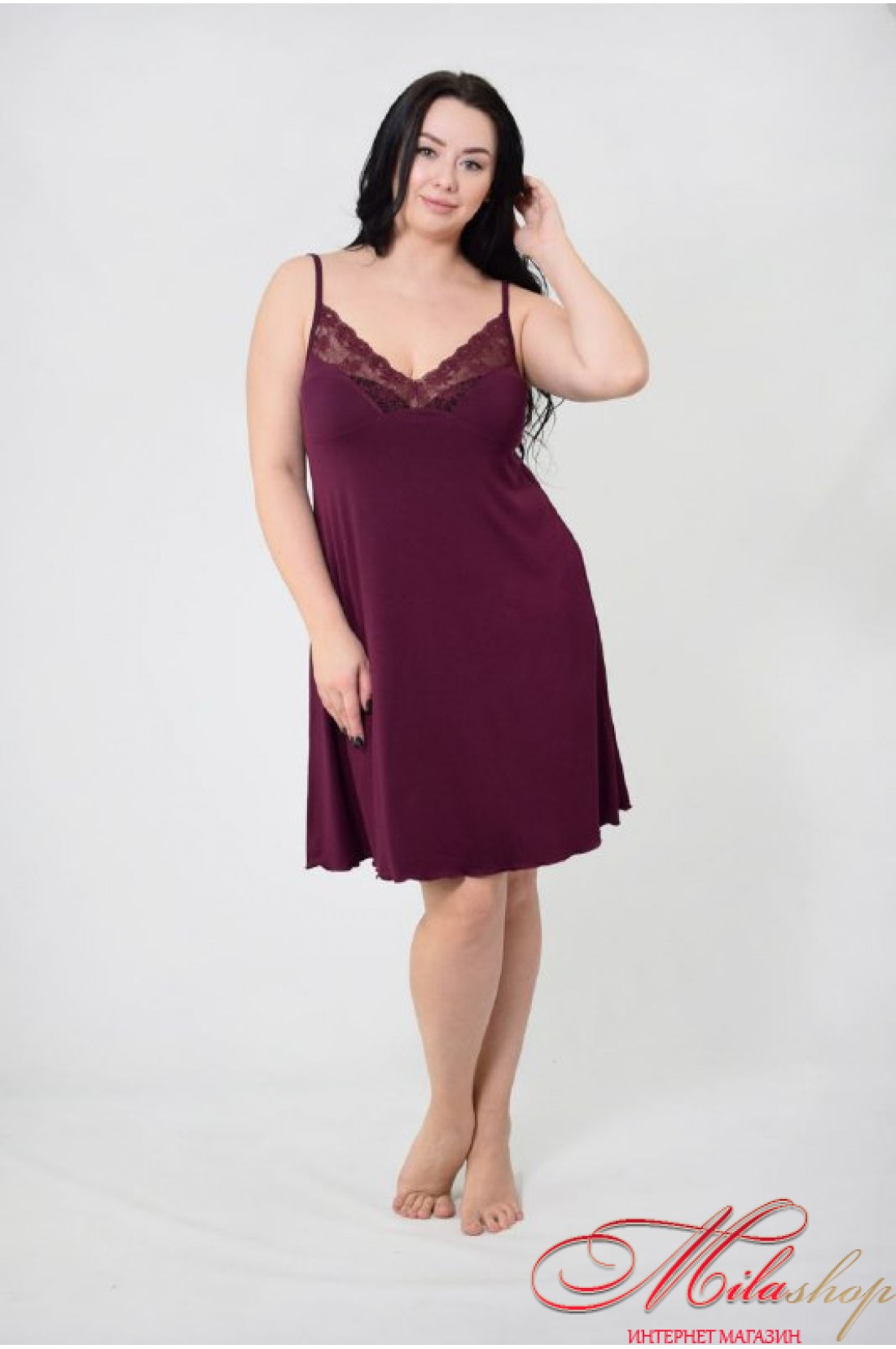 Женственная сорочка из вискозы, на тоненьких бретелях. Свободного силуэта. Линия декольте украшена кружевом.
