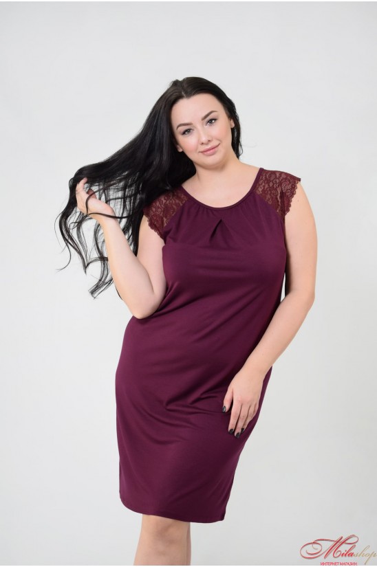 Сорочка для женщин с пышными формами. Изделие пошито из трикотажного полотна, крой по фигуре, плечи прикрыты красивым кружевом. В такой ночной рубашке каждая будет выглядеть элегантно и изящно.