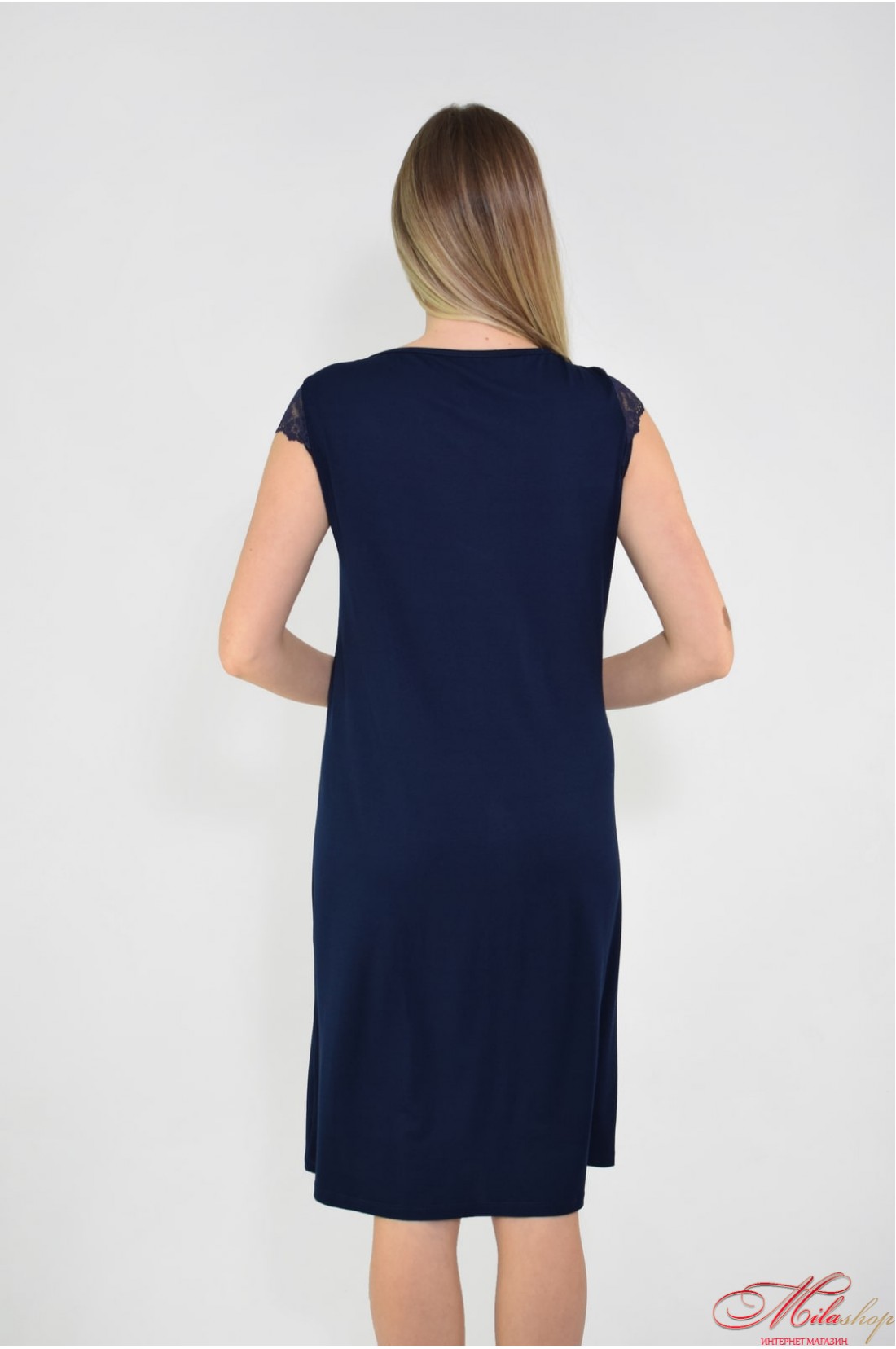 Рубашка для жінок з розкішними формами. Виріб пошитий із трикотажного полотна, крій по фігурі, плечі прикриті гарним мереживом. У такій нічній сорочці кожна виглядатиме елегантно та витончено.