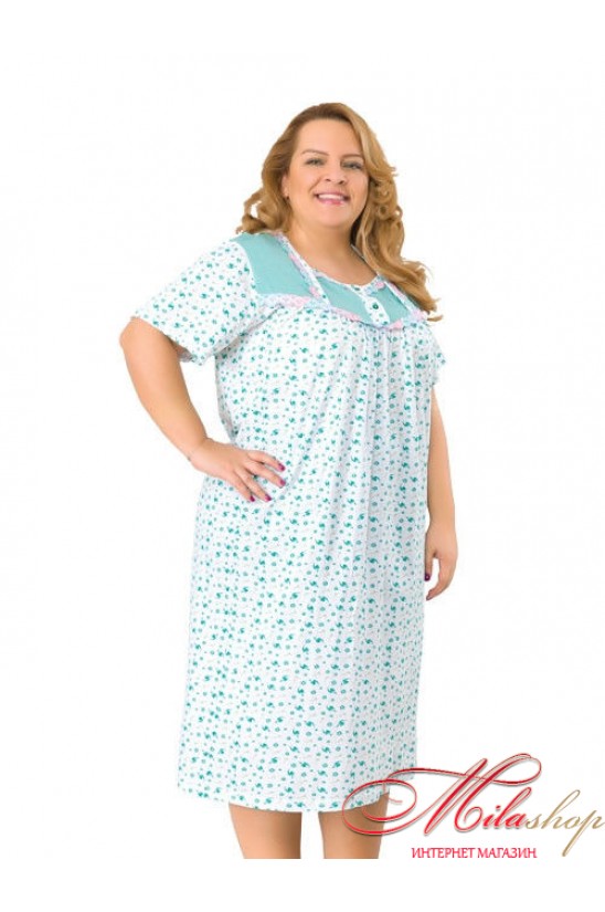 Ночная сорочка из хлопка. Короткий рукав. Украшена цветочным принтом.