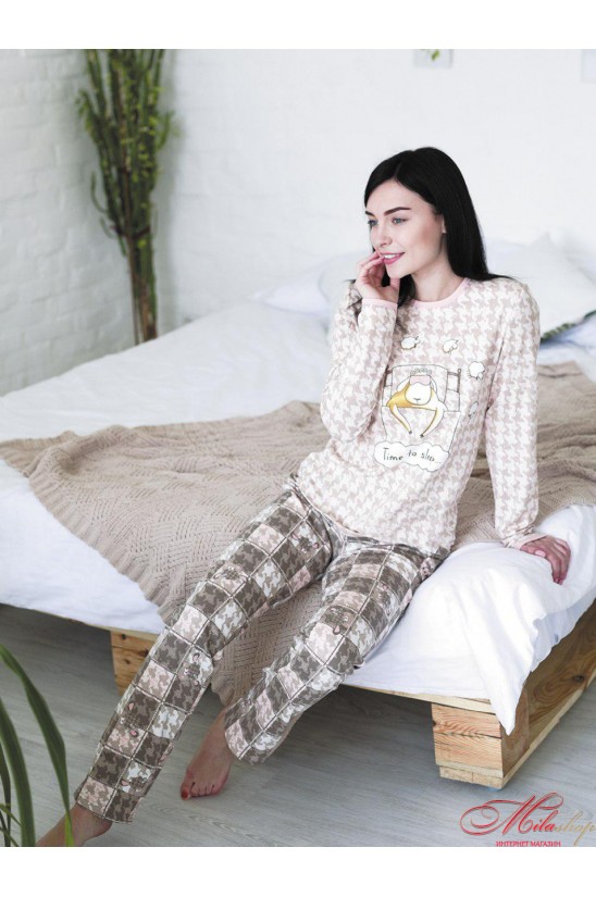 Утепленная пижама, состоит из реглана с длинным рукавом и штанов. Внутри начес - байка.Хороший вариант и как домашний костюм и как пижама в холодное время года. Полуприлегающий силует обеспечивает дополнительный комфорт, а зауженные штаны пождчеркивают фигуру. Состав 70% хлопок, 30% полиестер.