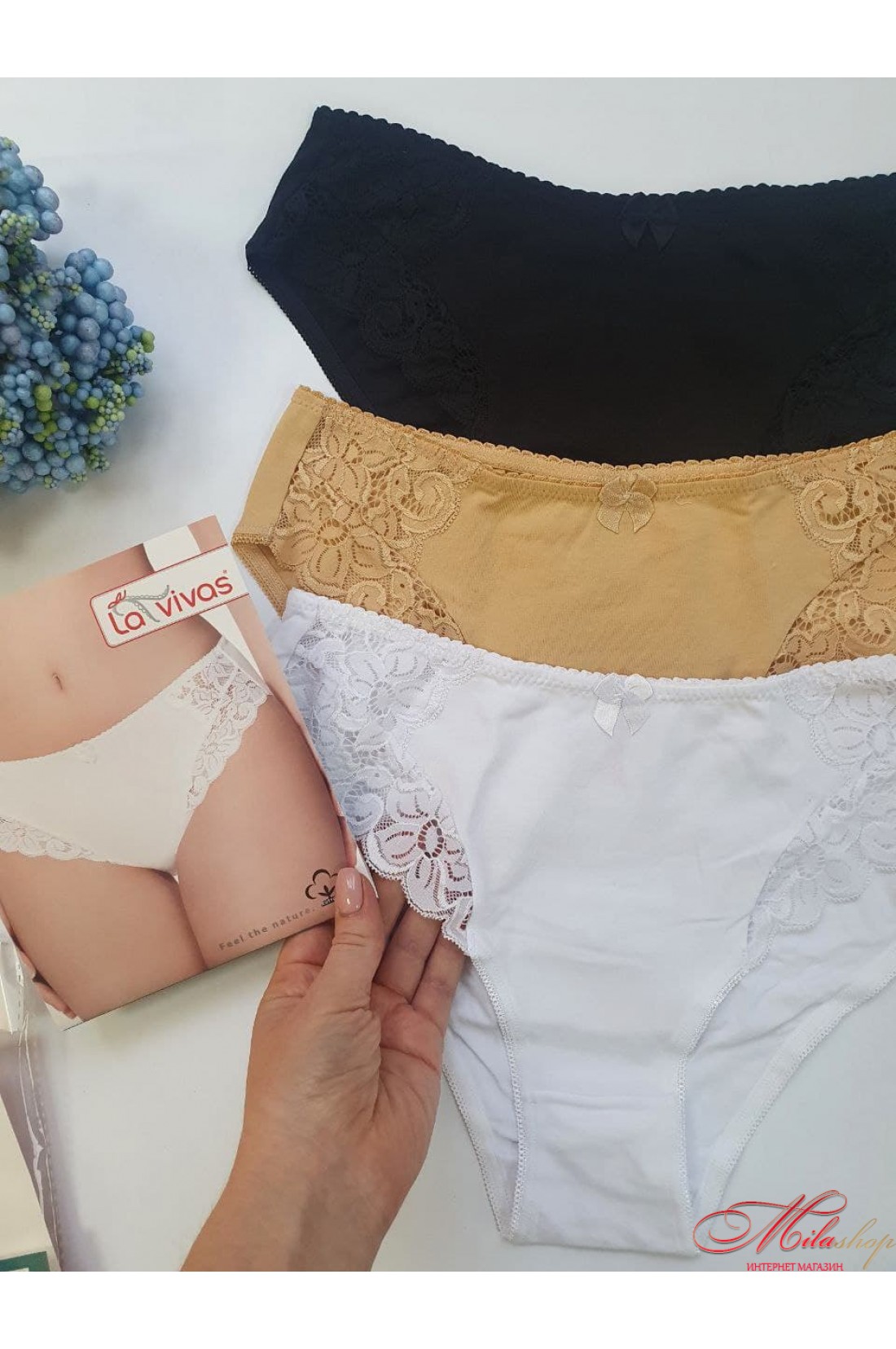 Трусики сліпи з бавовни з мереживними вставками Lavivas 20239